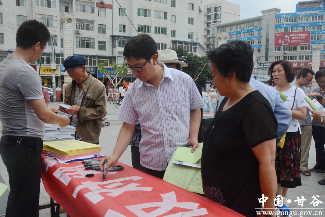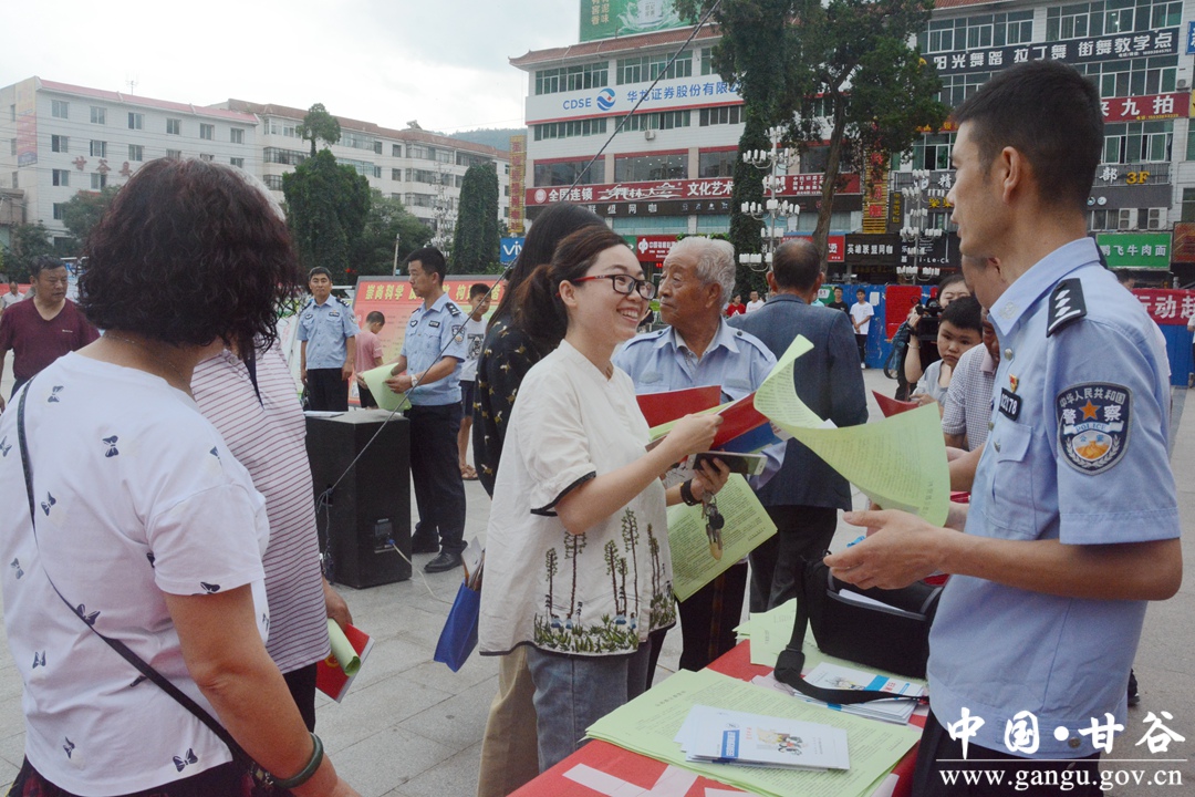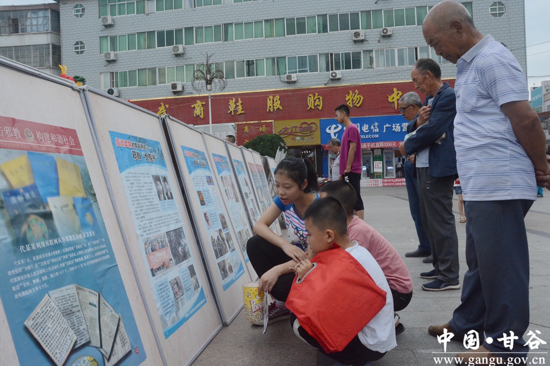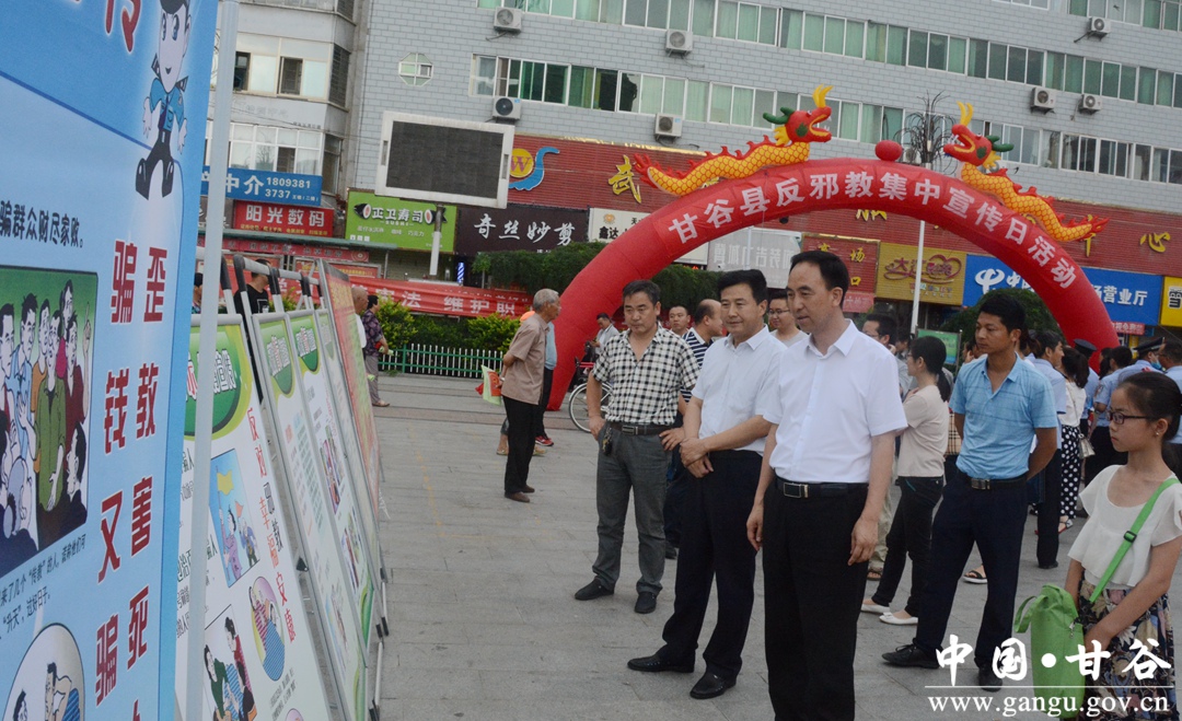 7月19日,甘谷县在大什字广场举行反邪教集中宣传日活动。县委常委、政法委书记冯全敬出席活动。