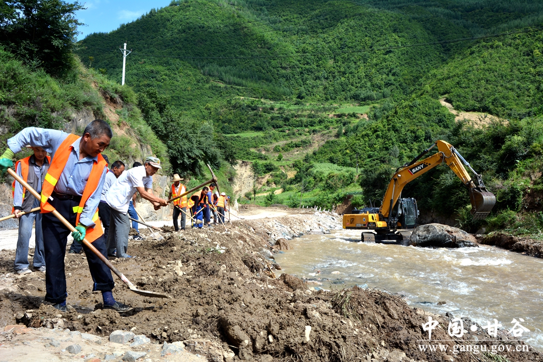 据悉,在古坡镇古坡村石咀背后组,甘谷鹏达市政工程有限公司,已投入大型机械4台,双桥车4辆,组织20多人从今早七点多开始,全力抢修水毁路段,预计投资5万余元;在黑吓沟至深岘子路段,甘谷龙升公司投入大型机械3台,大小运输车辆4辆,组织10多人,修补道路坍塌5处。工程负责人介绍,“今晚9时许,黑吓沟至深岘子路段将顺利通车。”