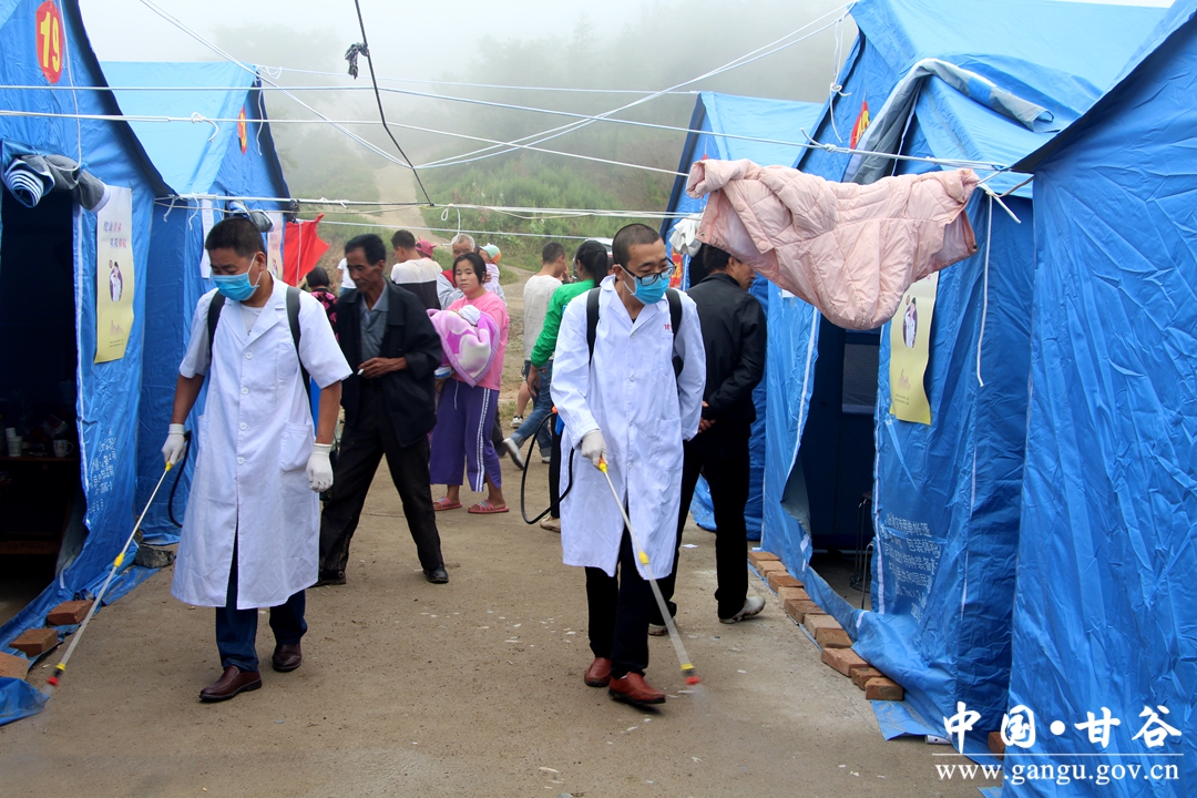 在古坡镇樊家寺村地质灾害集中安置点,县医疗专家组组织设立临时医务室,为受灾群众提供全天候24小时的基本医疗卫生服务。防疫人员对所有安置点内外展开喷洒消毒液、勘查水源、厕所消毒,并指导镇村两级防疫专干开展疾病防控应急处置、宣传等疾病防控工作,确保无传染病和疫情发生。县医院专家认真地对每一位安置点的群众开展心理疏导、健康咨询、健康检查,现场为身体不适的群众查病,镇卫生院免费开药,为受灾群众提供贴心的医疗卫生服务。
