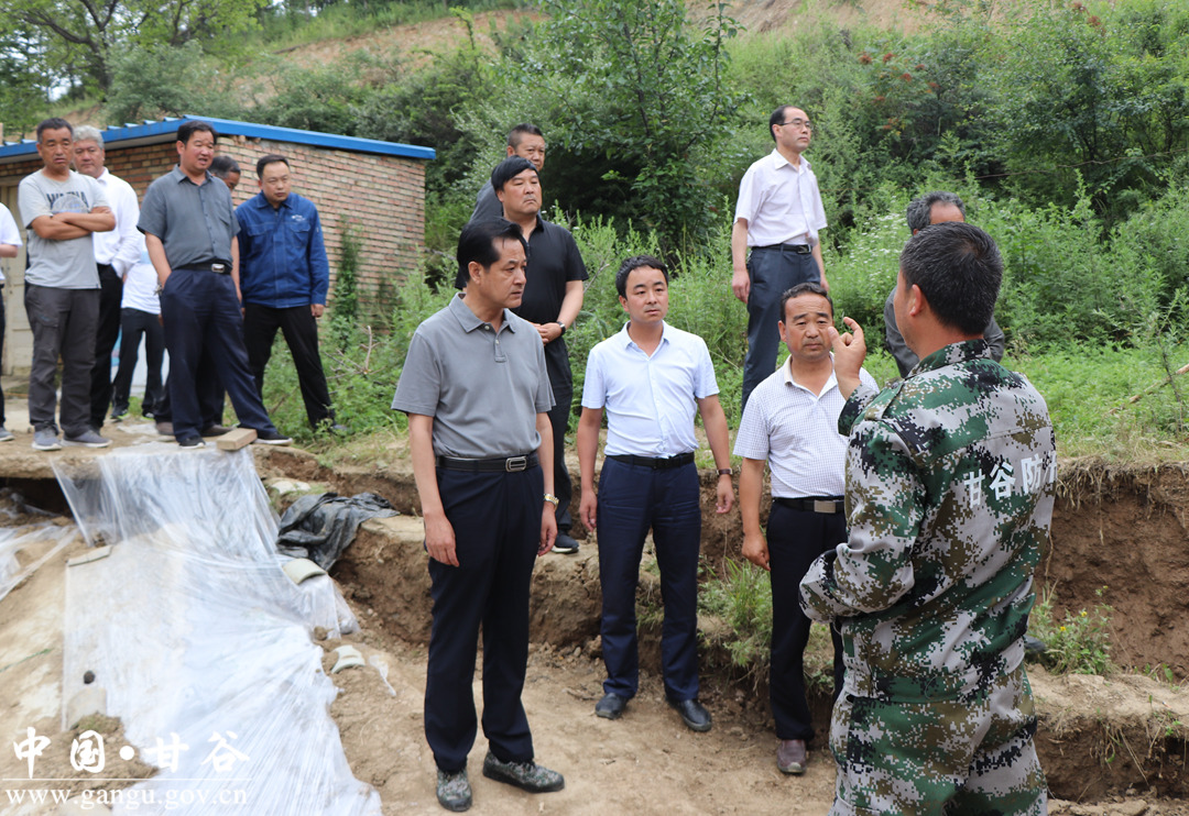 7月15日,县委书记申君明带领县民政、交通、国土、水务、永兴公司、龙升公司、義萌公司、甘谷鹏达市政工程有限公司等部门单位负责人,深入古坡等乡镇检查指导减灾救灾工作。他强调,各乡镇、各相关部门要充分认识当前防汛减灾工作面临的严峻形势,动员各方力量,有力有效开展防灾减灾工作,妥善安排受灾群众基本生活,最大限度降低灾害造成的损失。县委常委、常务副县长孟晓龙,县委常委、政法委书记冯全敬一同检查。