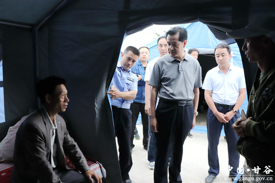 在古坡镇樊家寺村灾民临时安置点,申君明走进帐篷,向被安置在帐篷中的群众询问灾后生活情况,对古坡镇在险情发生后的迅速反应,采取的防范措施给予充分肯定。他强调,当务之急是要把受灾群众安置好,利用现有的学校、村阵地等场所集中安置,通过搭建帐篷、动员村民投亲靠友等方式,保证受灾群众有住处,生活有保障。要发动群众开展自救自助,抢修损毁道路,及时疏通交通,排查处理地质隐患点,避免次生灾害发生。