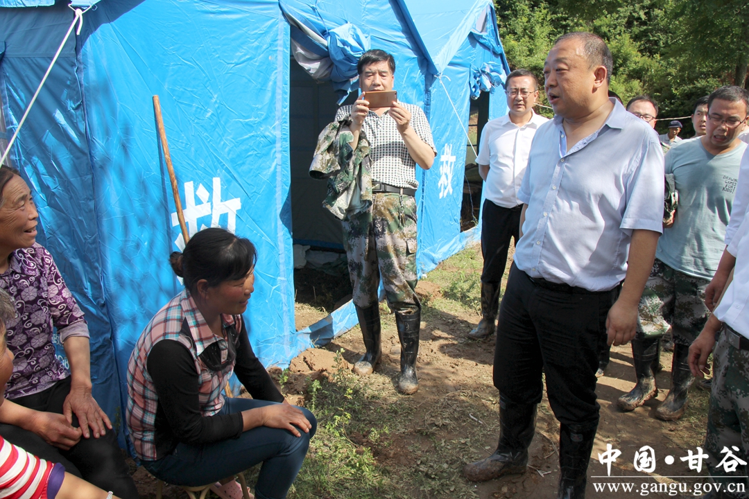 随后,吴健马不停蹄赶赴武家河镇杨河村查看灾情。由于洪水冲毁了进村的道路,车辆无法进入,吴健心系受灾群众,不顾山体滑坡、泥石流的危险,徒步向村内奔赴。在杨河村临时安置点,吴健走进帐篷,看望慰问受灾群众,详细了解受灾群众财产受损及生活情况,当得知受灾群众已全部安全转移,暴雨灾害没有造成人员伤亡,吴健欣慰的说,灾情发生后,乡村两级组织反应迅速、组织得当、部署周密、措施扎实,避免了暴雨灾害造成更大的损失。同时,他强调,乡村两级组织要牢固树立群众安危无小事的思想,继续完善好防灾救灾应急预案,发扬不畏艰险的精神,对工作进行再细化,明确责任,措施到位,按照无灾防有灾、小灾防大灾的要求,预防在前,千方百计避免灾害给群众带来的损失。要对受灾群众进行正面教育,增强防灾避灾知识,并发动群众开展自救自助,积极配合机械施工作业,积极抢修损毁道路,及时疏通河道,避免次生灾害发生。