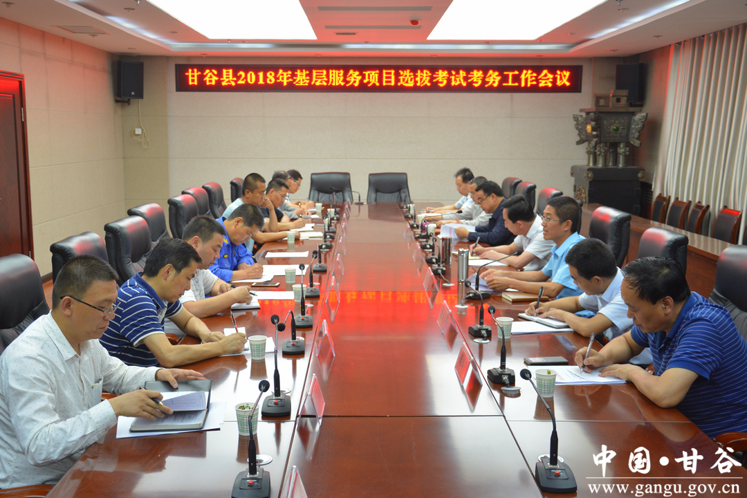 7月3日,甘谷县召开2018年基层服务项目选拔考试考务工作会议。县委常委、常务副县长孟晓龙,副县长牛武军出席会议;县人社、教体、公安、卫生、交警、执法等考试领导小组成员单位负责人及各考点负责人参加会议。
