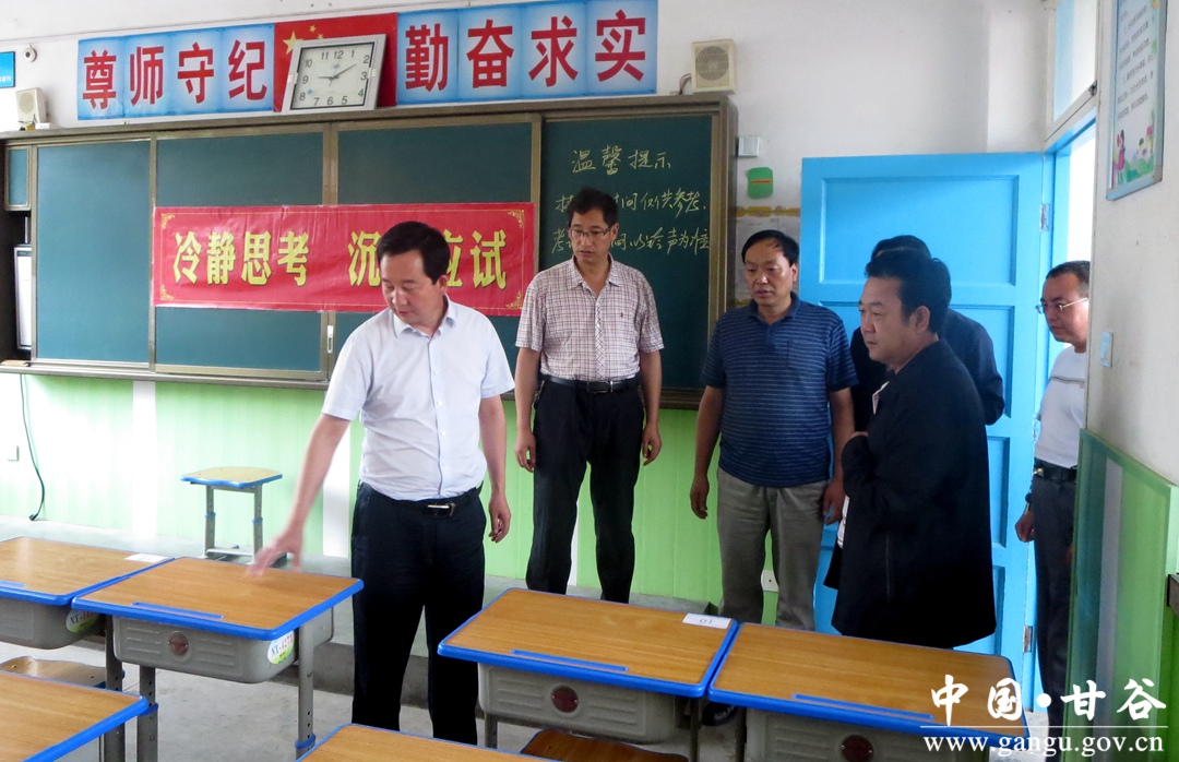 7月6日,县委常委、常务副县长孟晓龙带领县人社局、教体局、公安局、交警大队、综合执法局、供电、电信等部门负责人,就甘肃省2018年基层服务项目选拔甘谷考区各考点备考工作进行全面督查。