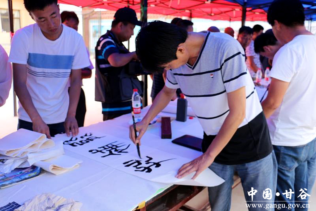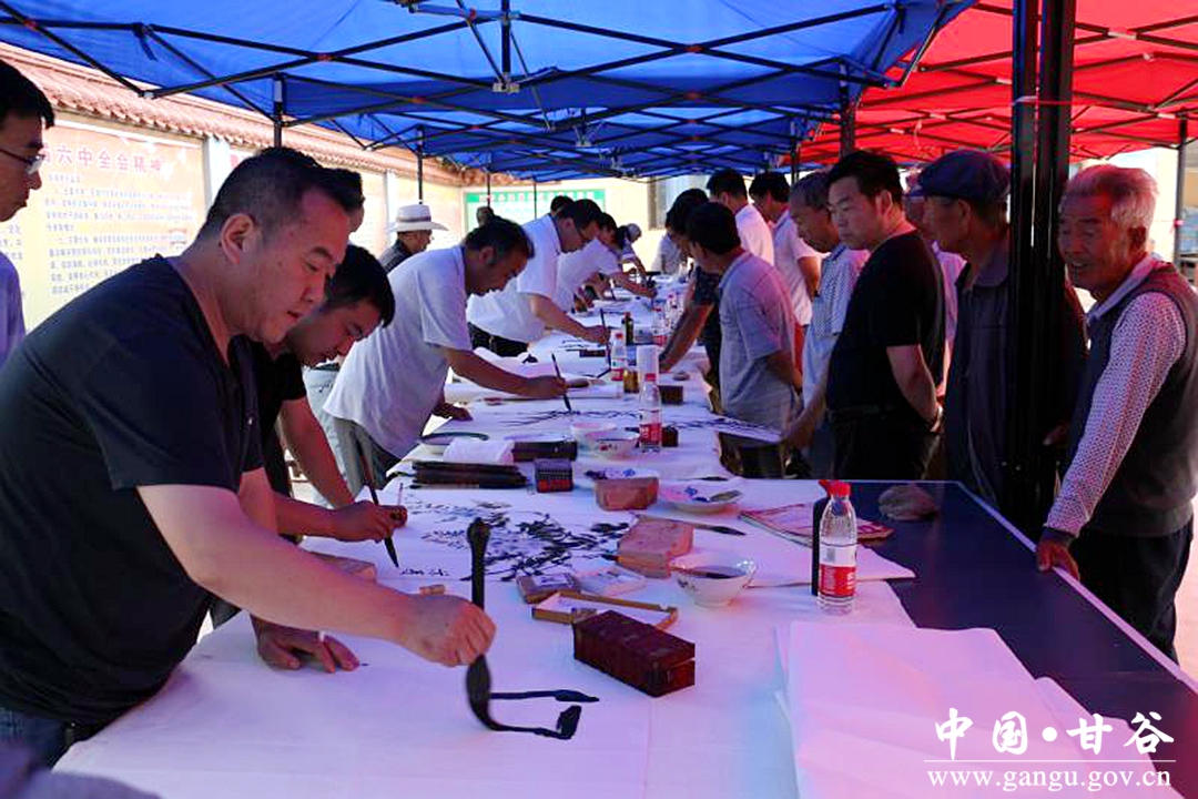 为认真贯彻落实县委、县政府脱贫攻坚工作部署要求,切实转变驻村帮扶干部工作作风,活跃全村群众的精神文化生活。7月1日,县信访局特邀甘谷书画院部分书画家赴安远镇王窑村开展精准扶贫、扶智、扶志送书画下乡活动。安远镇负责人、王窑村包村领导、县信访局全体驻村帮扶干部、村两委会成员及部分村民参加活动。