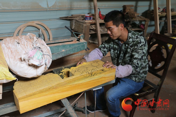 在甘谷县城郊的新兴镇蔡家寺村渭六公路中段,有一家特殊的木雕厂。这里专业从事木雕艺术创作,承接各种古建筑、古建木雕和彩画,订制各种仿古家具、木雕工艺品、木雕佛像,销售各类办公家具。这家公司的创始人张宏刚是省级非物质文化传承人,也是一名残疾人。