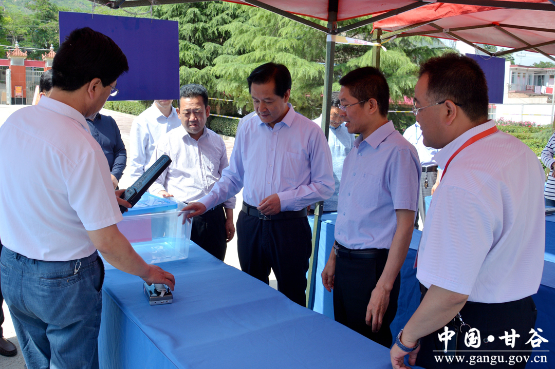 督查组先后来到甘谷一中、甘谷二中、康庄中学、西关中学、像山中学、育才中学、南街小学、柳湖小学等考点,重点察看了考场布置、安全监控等情况,并听取了考点负责人关于考点设置、组织及考务工作的汇报,详细了解了高考试卷保密、应急预案及考场安全等方面的准备情况。