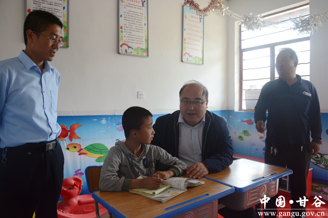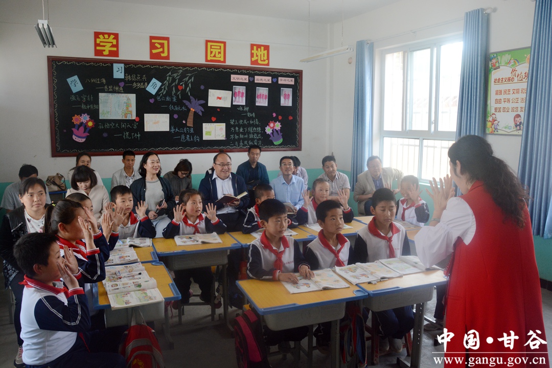 5月29日,市委常委、副市长宫辉带领调研组深入甘谷县武家河镇调研农村小学小班化教育改革工作,开展示范教学活动。市政府副秘书长米万平,市教育局副局长张笑青,市建一小学校长王增梅,市建二小学校长吴重霞;副县长牛武军,县教体局负责人一同调研。