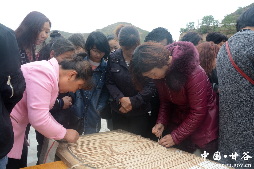“共享扶贫”项目是全国脱贫攻坚创新奖获得者、甘谷县腾达技术培训学校校长张维林发挥企业致富带富作用,创办的又一项扶贫就业项目。该项目采取“政府+企业+贫困户”的形式,由政府引导,企业投入设备,提供原材料,在各共享扶贫培训点对贫困户妇女进行现场教学培训,让贫困户妇女零投资学会编织技能,编制产品由企业回收销售,确保贫困户妇女稳定收入。“共享扶贫”项目的实施,将为贫困户在家门口提供就业岗位,做到照顾家庭、作务农活与上班挣钱三不误,成为最有效、最直接的精准扶贫方式。