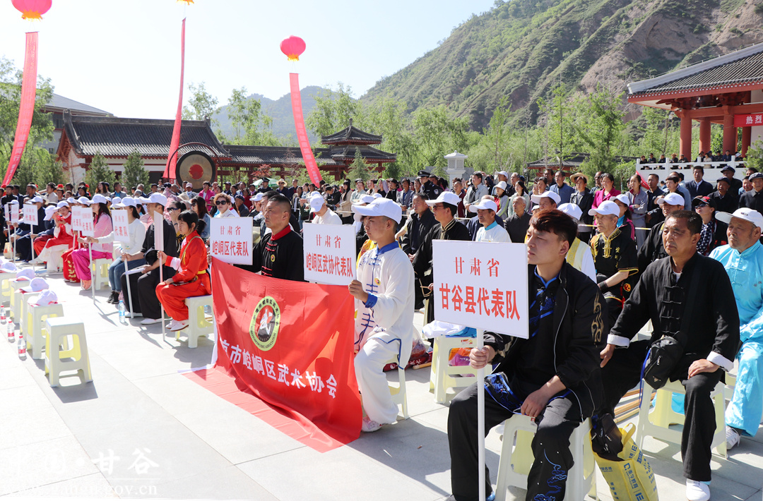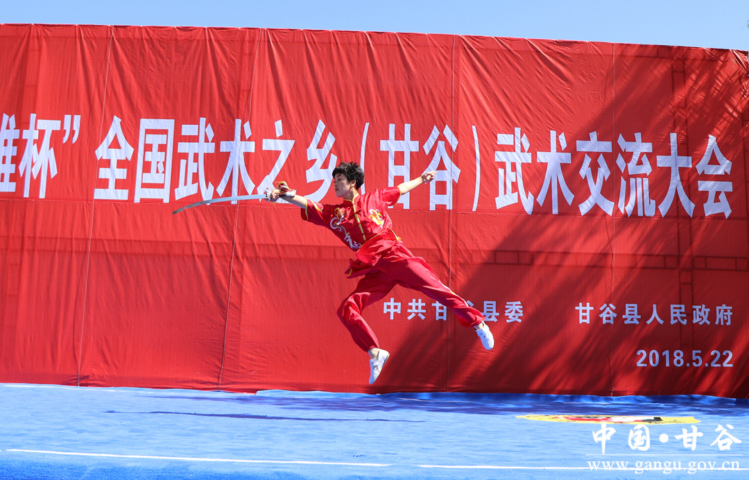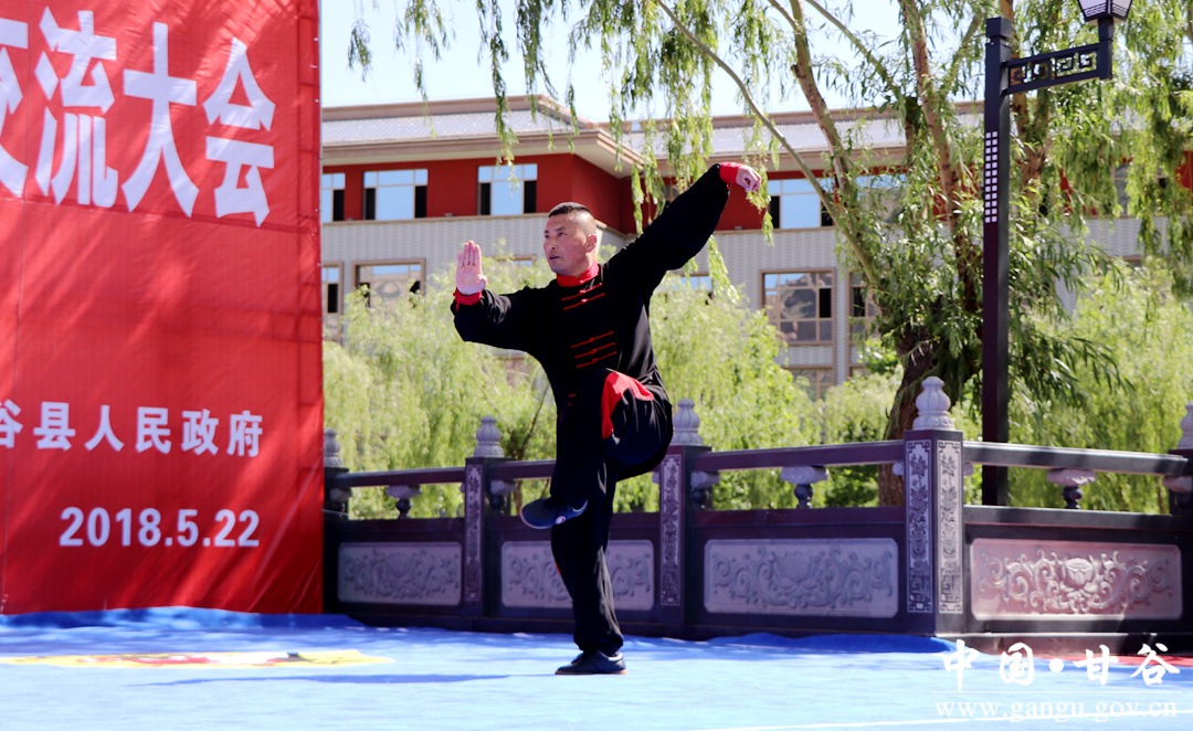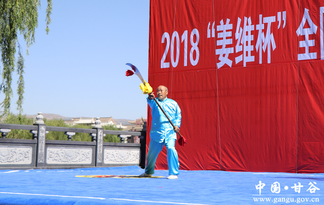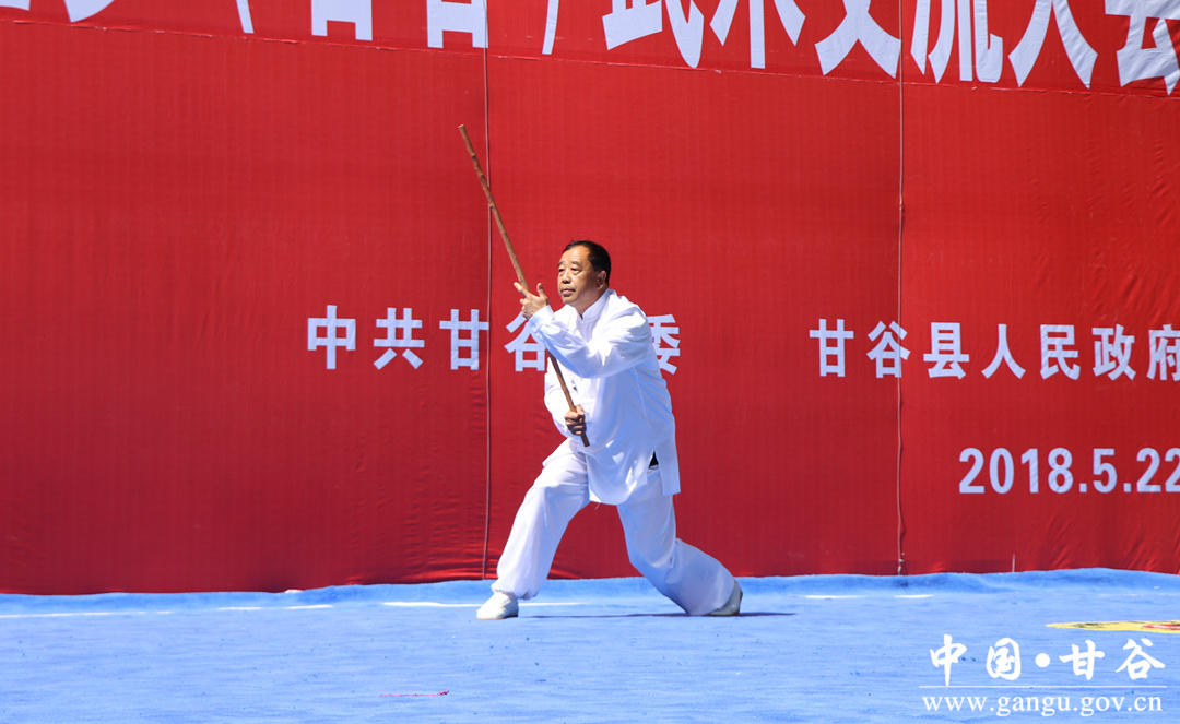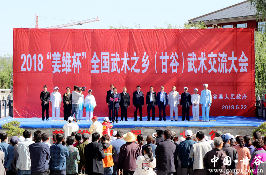 5月22日,2018“姜维杯”全国武术之乡(甘谷)武术交流大会在大像山公园尚武苑开幕。天水市体育局副局长李爱平,县委副书记、县长吴健,县委常委、宣传部长张庆元,县人大常委会副主任王金生,副县长牛武军,县政协副主席马清平出席开幕仪式。来自内蒙古、四川、山西、青海、宁夏、陕西、甘肃7省区12支代表队140多名武术名家和运动员齐聚甘谷,共同切磋武术技艺,交流武术文化。