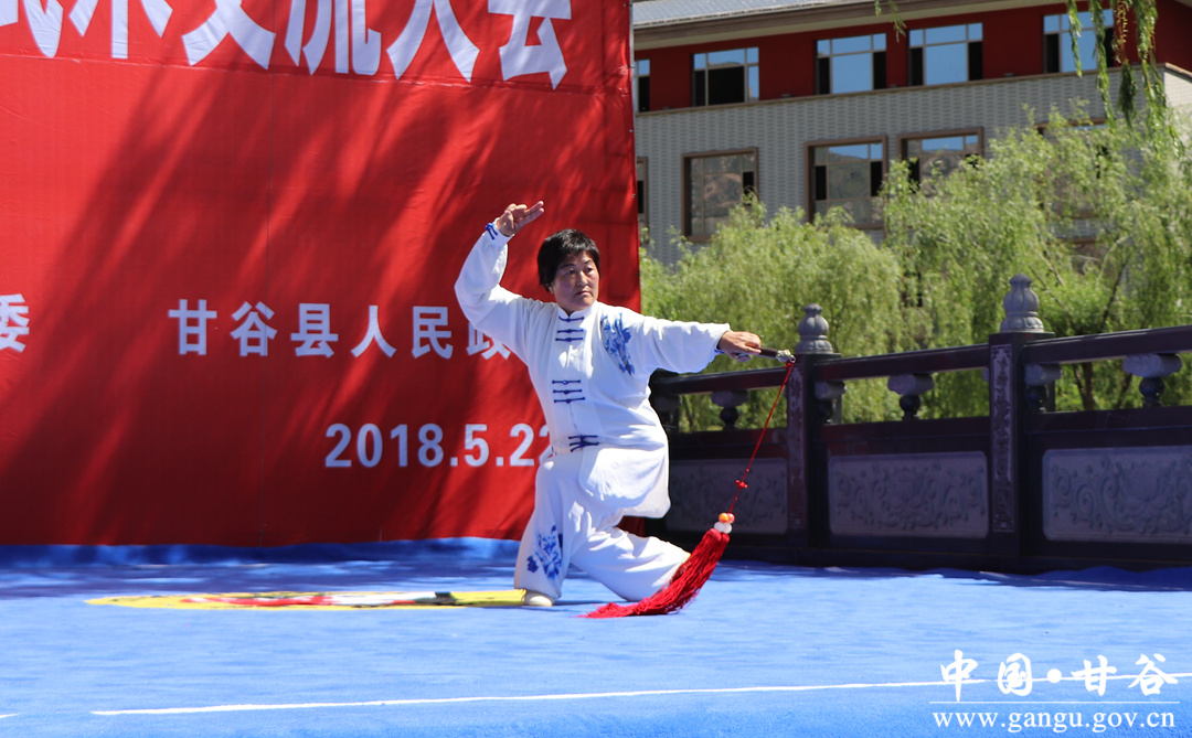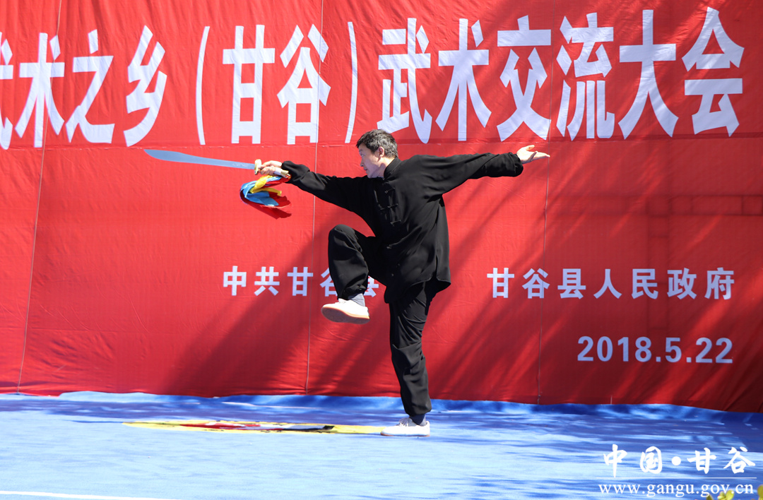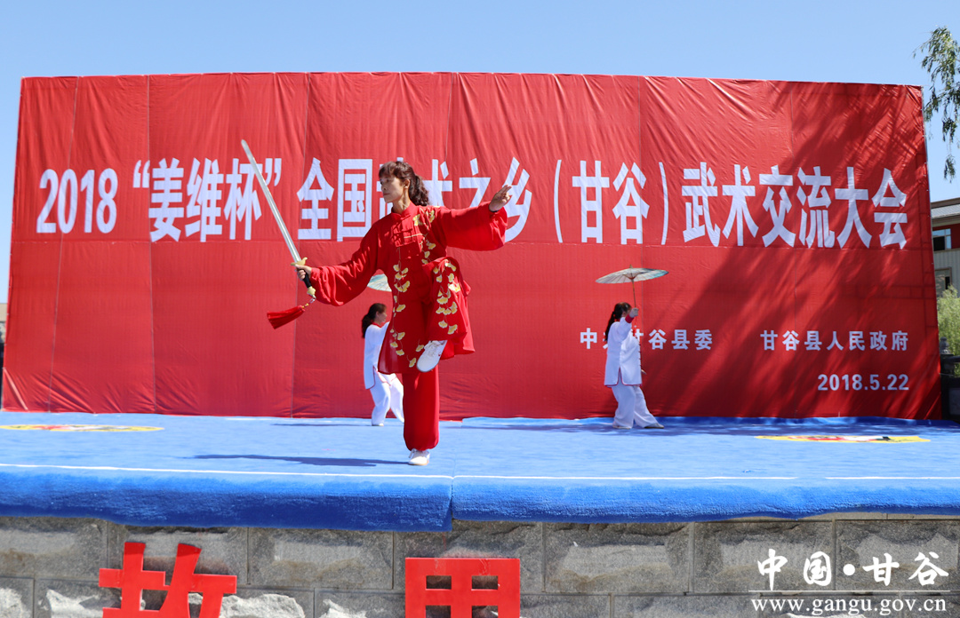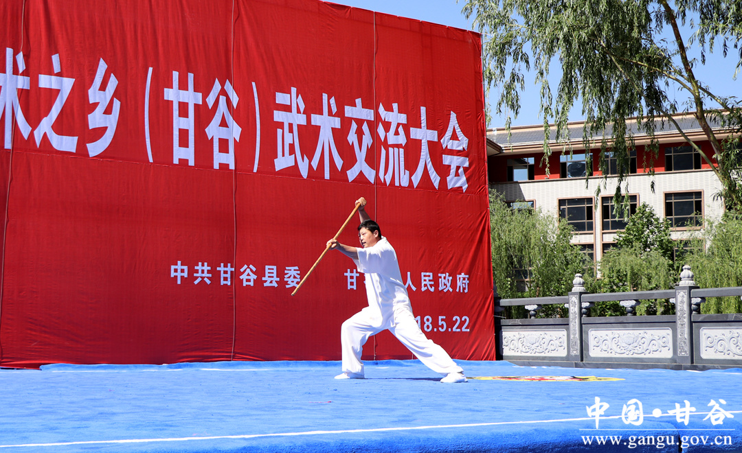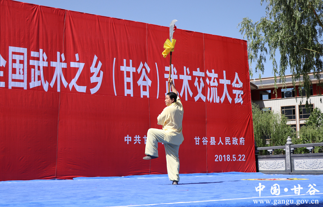 5月22日,2018“姜维杯”全国武术之乡(甘谷)武术交流大会在大像山公园尚武苑开幕。天水市体育局副局长李爱平,县委副书记、县长吴健,县委常委、宣传部长张庆元,县人大常委会副主任王金生,副县长牛武军,县政协副主席马清平出席开幕仪式。来自内蒙古、四川、山西、青海、宁夏、陕西、甘肃7省区12支代表队140多名武术名家和运动员齐聚甘谷,共同切磋武术技艺,交流武术文化。