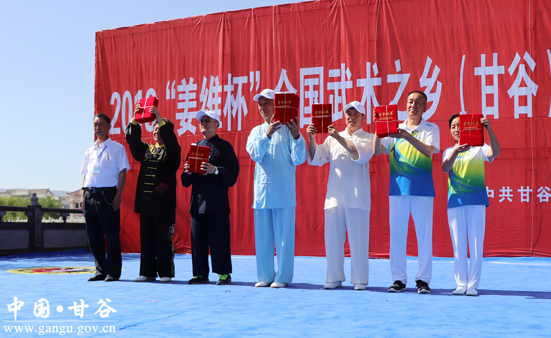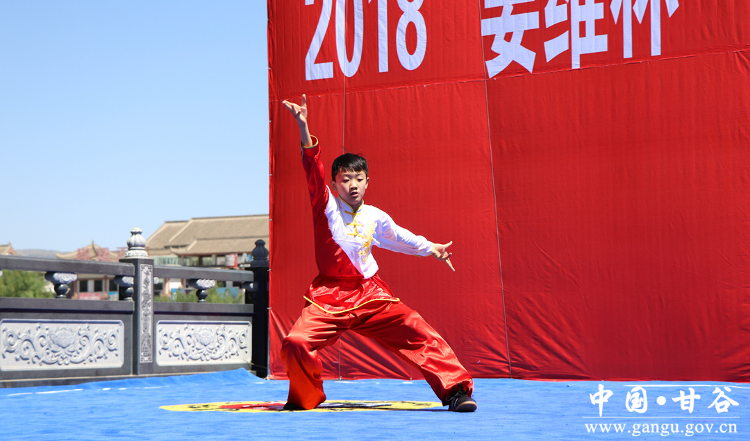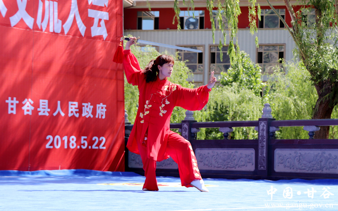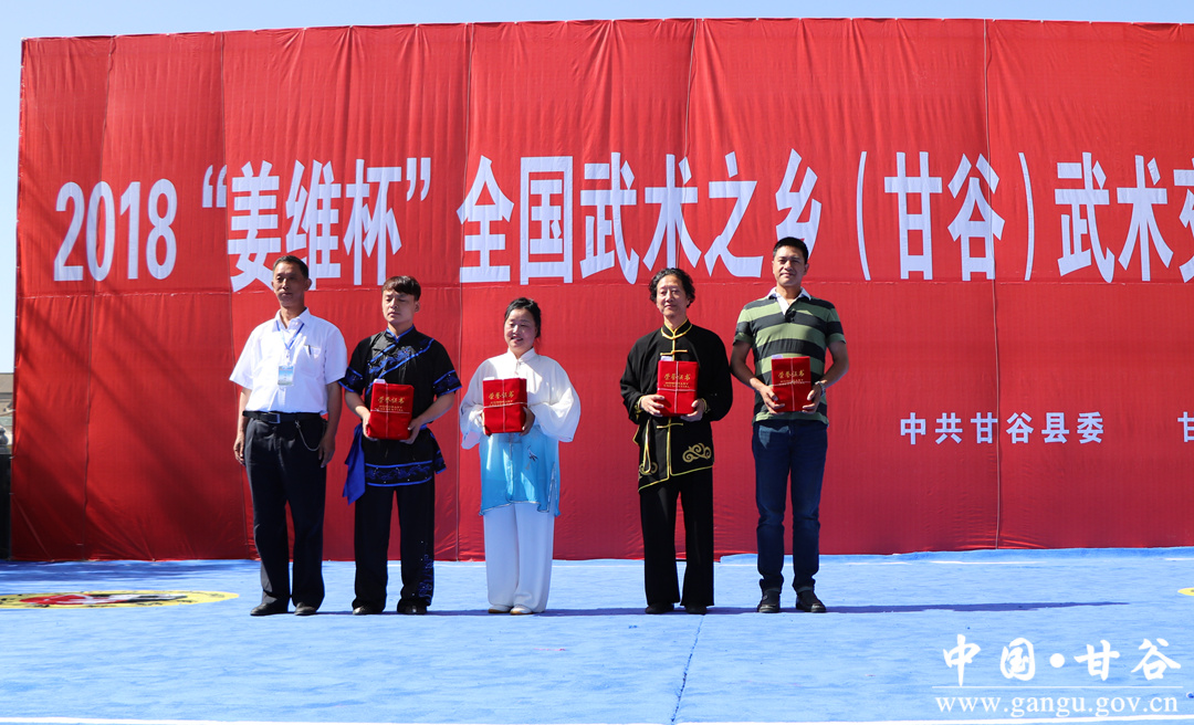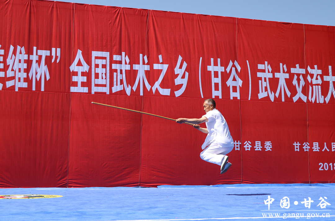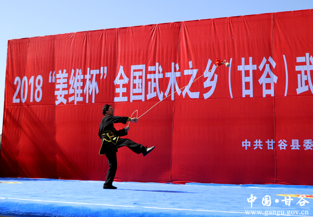 5月22日,2018“姜维杯”全国武术之乡(甘谷)武术交流大会在大像山公园尚武苑开幕。天水市体育局副局长李爱平,县委副书记、县长吴健,县委常委、宣传部长张庆元,县人大常委会副主任王金生,副县长牛武军,县政协副主席马清平出席开幕仪式。来自内蒙古、四川、山西、青海、宁夏、陕西、甘肃7省区12支代表队140多名武术名家和运动员齐聚甘谷,共同切磋武术技艺,交流武术文化。