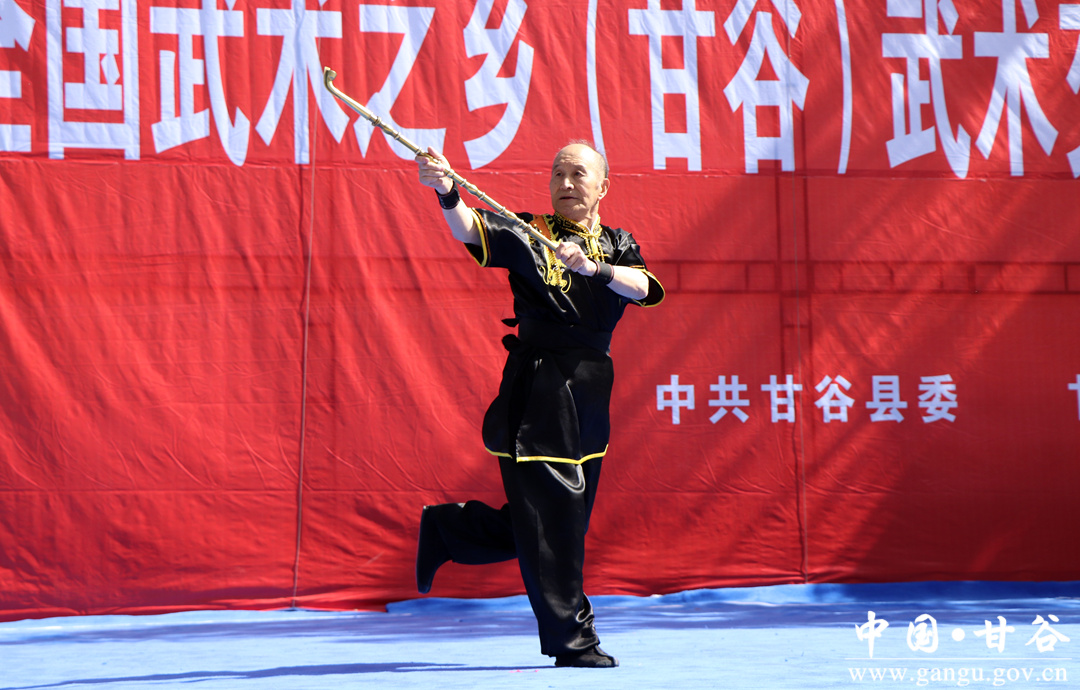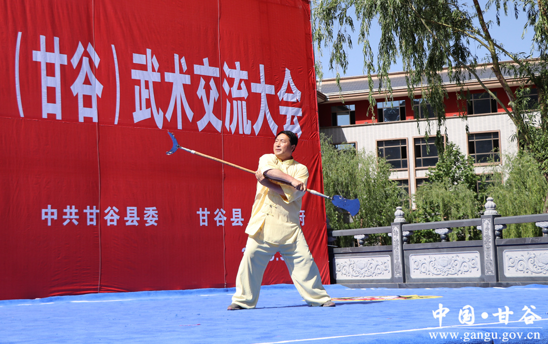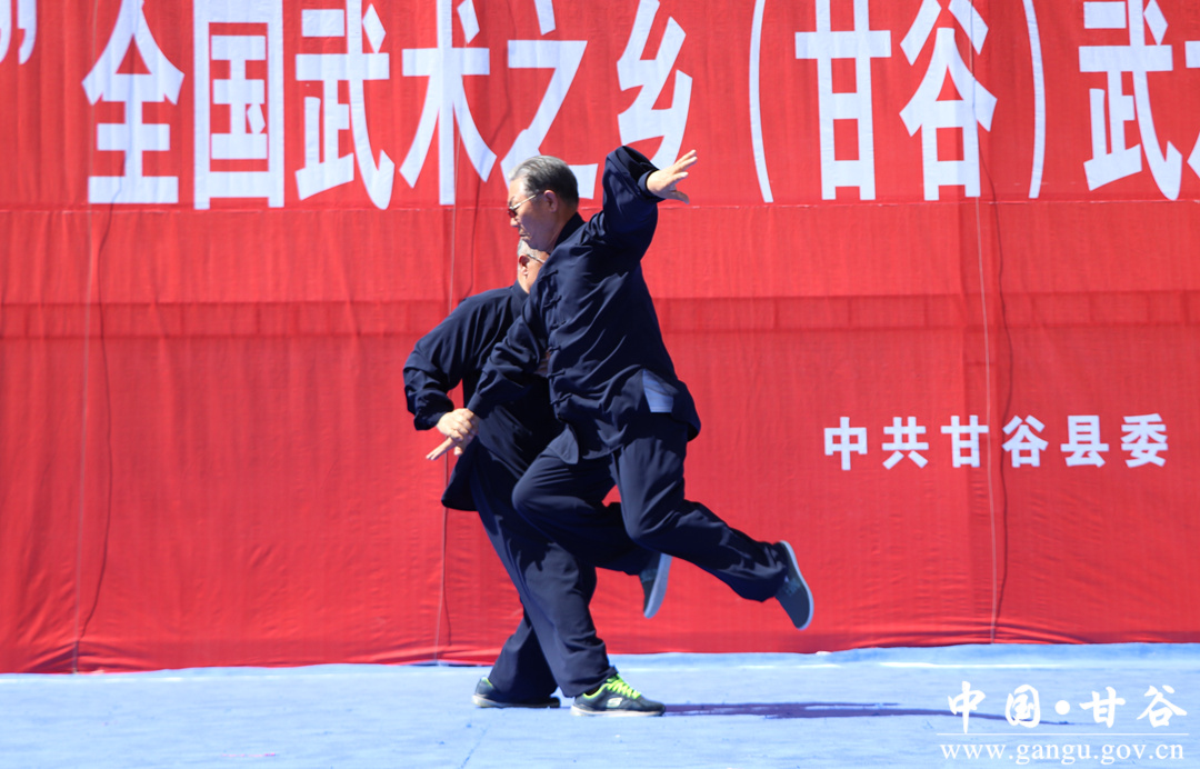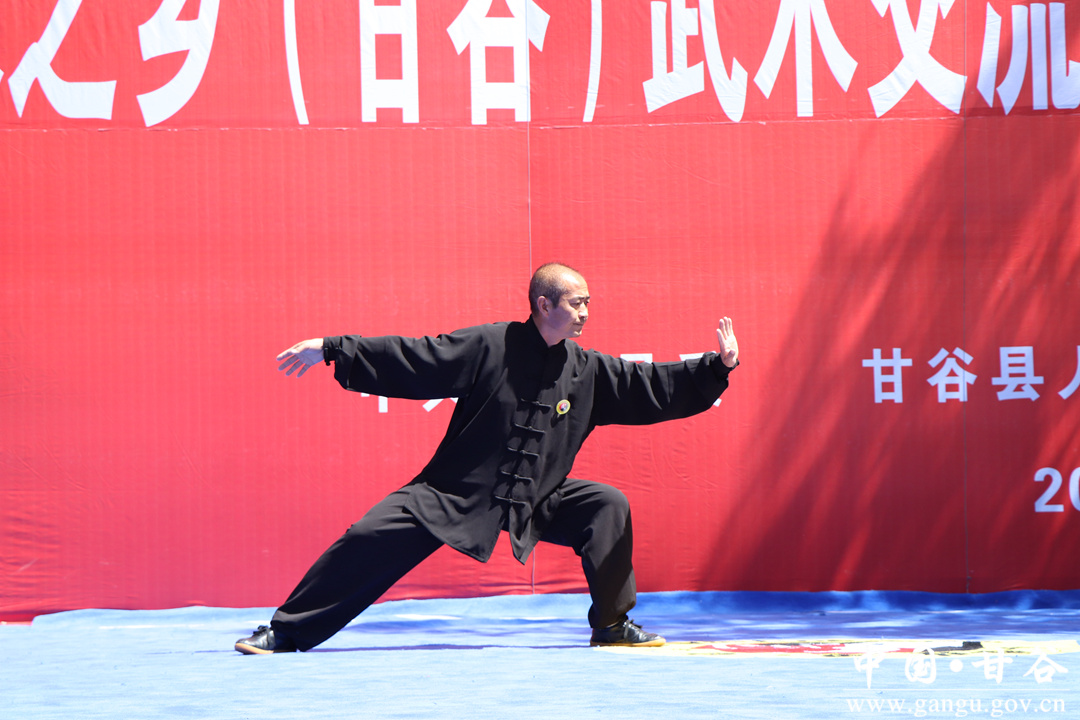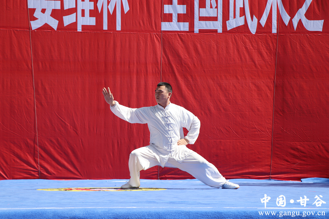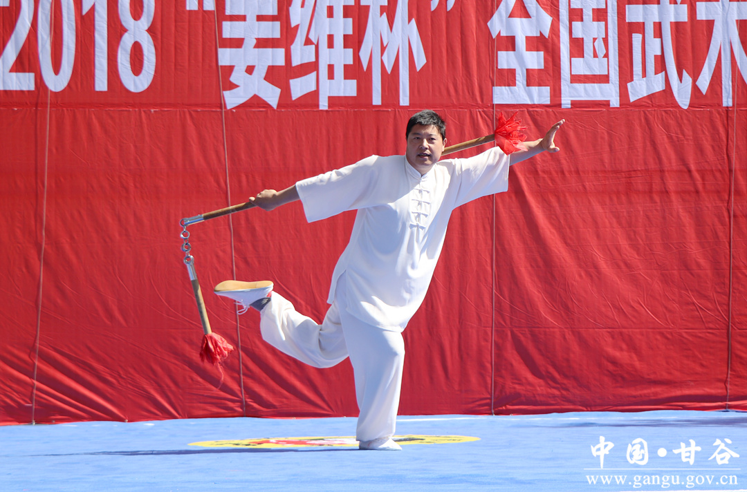 牛武军在致辞中说,甘谷历史悠久,人文荟萃,是“全国武术之乡”,素有崇文尚武的优良传统,武术文化源远流长,数千年来传承不息,涌现出以蜀汉大将军姜维为代表的一大批杰出人物,形成了极富地方特色的传统武术文化。近年来,县委、县政府大力支持武术文化研究,深入挖掘整理传统武术套路,广泛组织开展各类武术交流活动,武术事业得到了长足的发展,广大群众习武健身蔚然成风,武术健儿在国内大赛中屡获殊荣,我县先后荣获“全国群众体育先进县”和“全省发展体育产业先进县”称号。这次“姜维杯”武术交流大会的成功举办,为武术健儿搭建了交流切磋的良好平台,对培养新型武术人才,实施全民健身战略,推动武术事业发展具有十分重要的意义。相信通过各位武术名家和运动员的交流切磋,这次大会一定能够进一步传承和弘扬中华优秀武术文化,打造姜维武术品牌,将中华武术发扬光大,共同弘扬国粹。