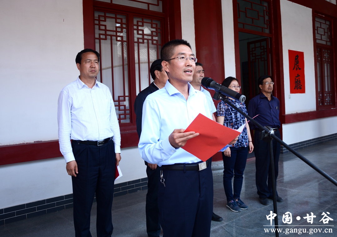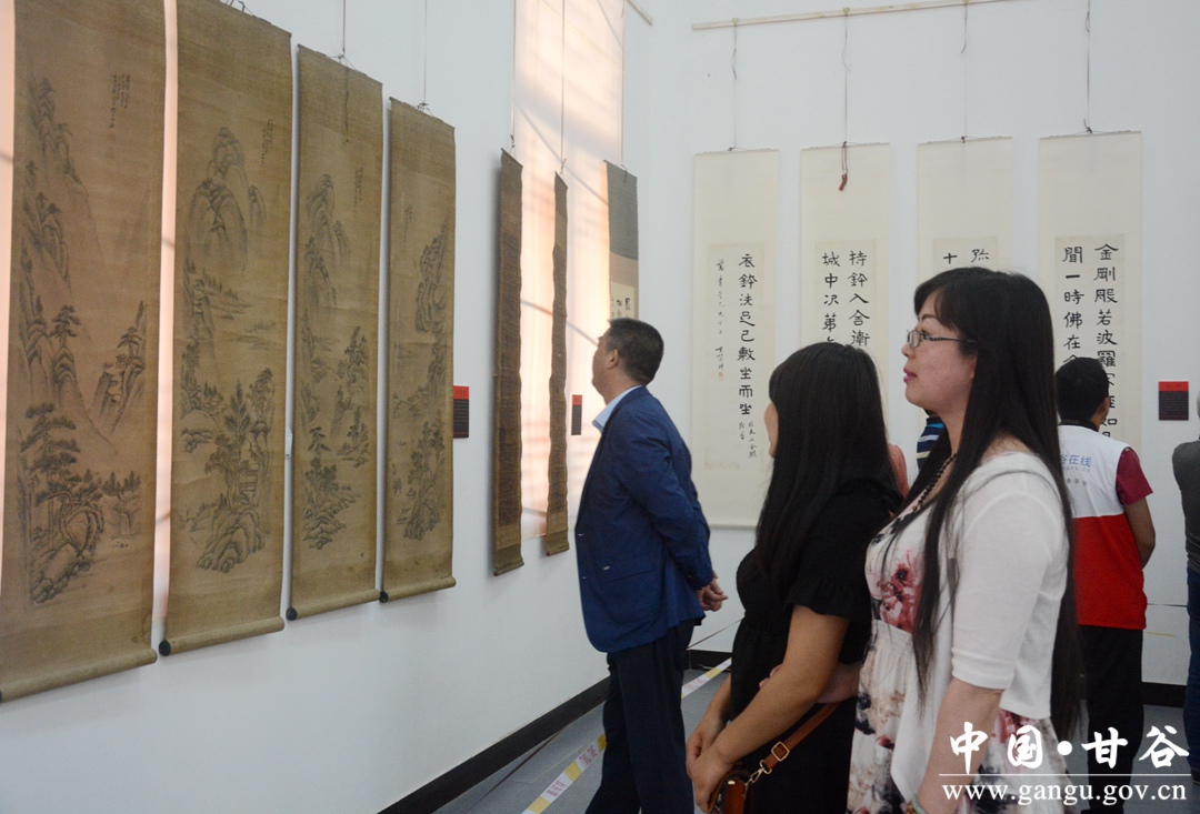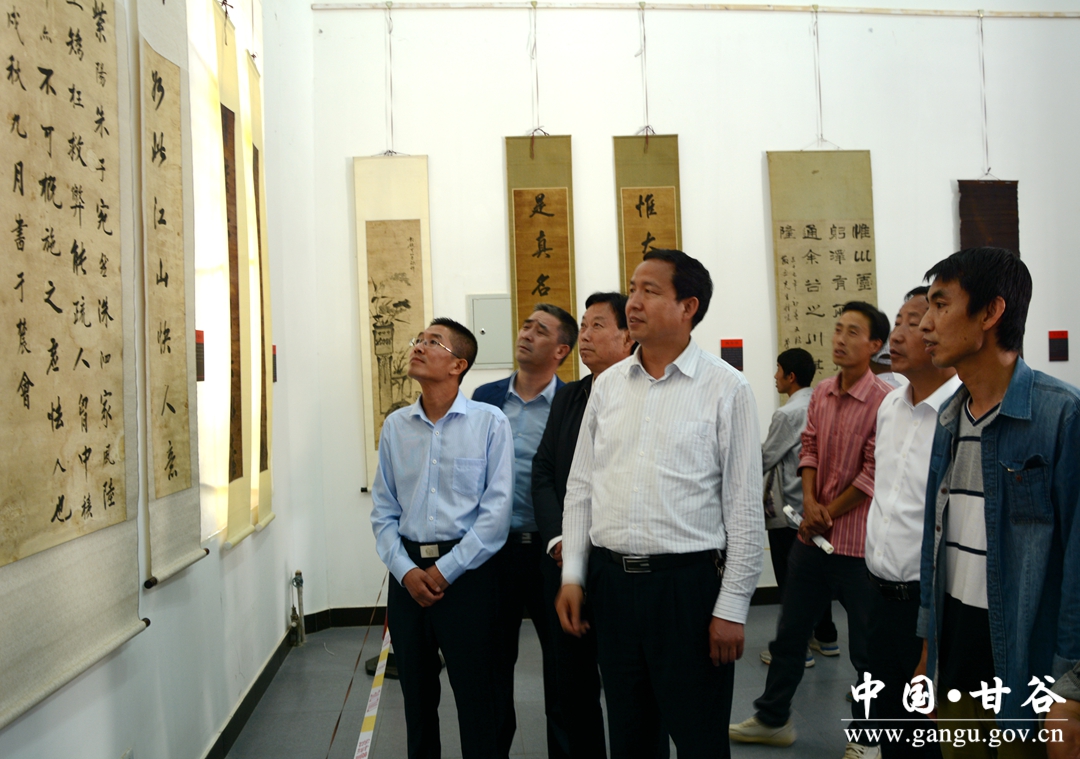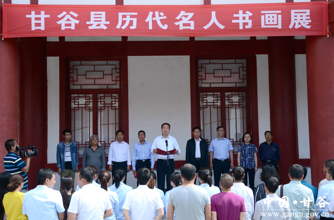 张庆元代表县四大组织对甘谷县2018年大像山民俗文化旅游节历代名人书画展开展表示热烈祝贺。他在讲话中说,甘谷历史悠久,文化璀璨。自古以来文风兴盛,名家辈出,家家挂字画,户户翰墨香,先后涌现出一大批德艺双馨的书画家,创作出一大批文化瑰宝,丰富和充实了群众的精神文化生活。此次举办的大像山民俗文化旅游节历代名人书画展,取材广泛,品味高雅,主题鲜明,是甘谷传统文化的集中展示,充分展现了“华夏第一县”厚重的文化积淀,展示了甘谷人民昂扬向上、奋发有为的精神风貌。同时,本次书画展给广大书画爱好者提供了学习交流的平台,必将进一步提高全县书画艺术普及率,推动全县书画艺术再上新台阶。