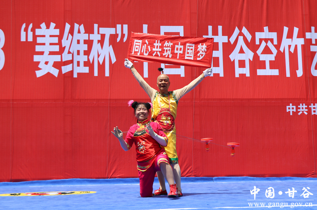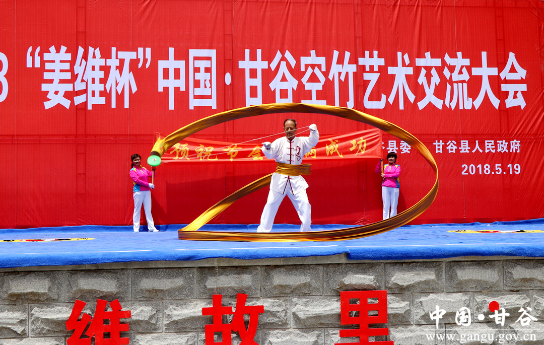 五月的甘谷,月季飘香,生机盎然,激情涌动。5月19日,2018“姜维杯”中国•甘谷空竹艺术交流大会在尚武苑盛大开幕。县委常委、宣传部长张庆元,县人大常委会副主任王金生,副县长牛武军,县政协副主席马清平出席开幕仪式。来自青海、宁夏、陕西、甘肃4省区12个地区的120名空竹艺术爱好者齐聚甘谷,切磋技艺,交流经验,展示空竹艺术的独特魅力。