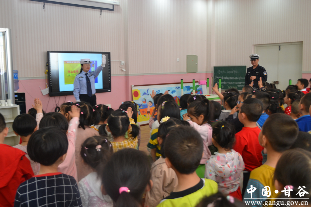 为了普及交通安全知识,增强幼儿的交通安全意识,5月15日,甘谷县第二幼儿园邀请中三班谢静如小朋友的爸爸——甘谷县交警大队的谢警官和他的团队,给小朋友和部分家长上了一堂“交通安全我知道”主题教育活动。