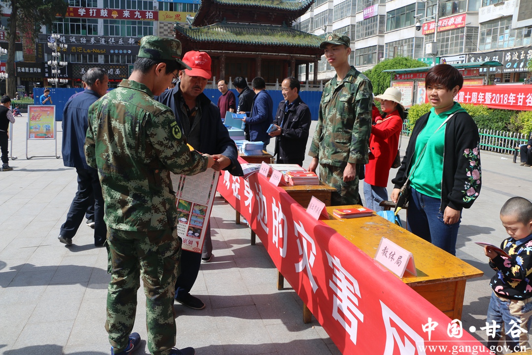 为进一步提高全社会防灾减灾意识,普及推广防灾减灾知识和避灾自救技能,最大限度地减轻自然灾害的损失,确保人民群众生命财产安全,5月12日,甘谷县民政局、地震局、气象局等相关部门单位在大十字广场举行5.12全国防灾减灾日宣传活动。