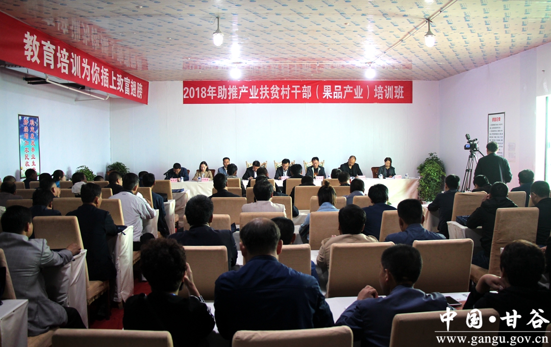 5月4日,天水市助推产业扶贫村干部(果品产业)第二期培训班甘谷县开班。县委副书记宋学勤出席开班仪式并讲话;县委组织部、县农业局、果业局、畜牧局等相关部门负责人参加开班仪式。甘谷县、武山县深度贫困村村主任、村支书、村第一书记和帮扶队队长150多人参加培训。