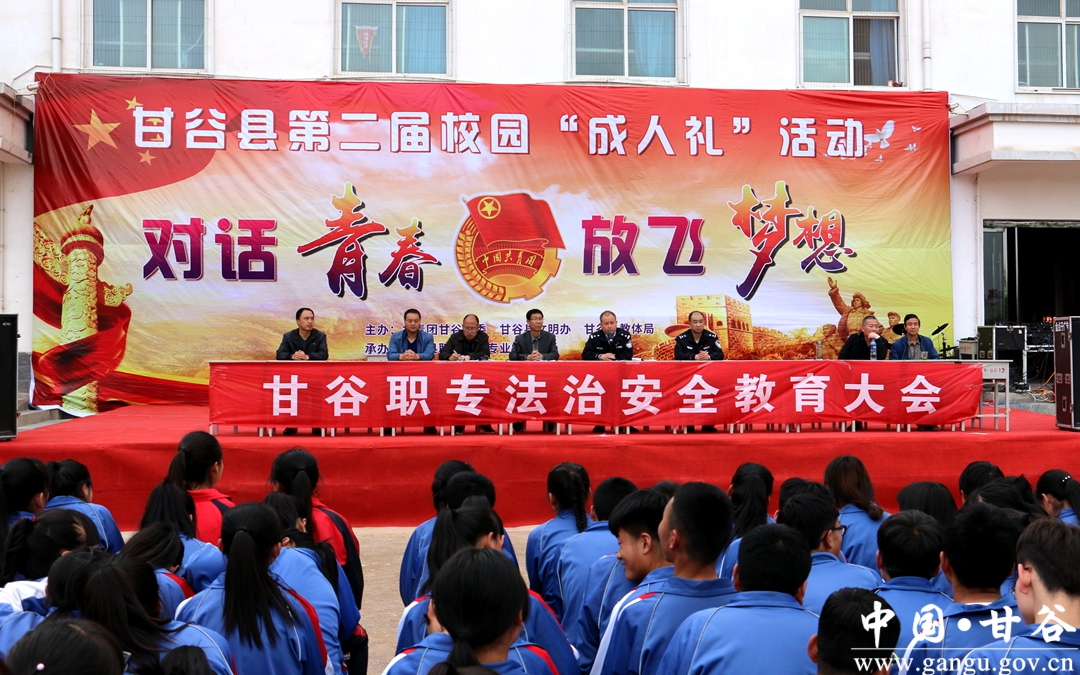 为切实保障学生的人身安全,提高学生自我保护能力,增强学生的法治观念,提高学生的法治意识,有效预防校园欺凌及人身伤害事故,进一步强化全体学生的安全意识。近日,甘谷县职业中等专业学校召开法治安全教育大会,特邀甘谷县西城派出所张向福教导和马金强所长进校园开展“法治进校园,安全在身边”主题活动,向广大师生宣传法治安全知识和自我保护知识。