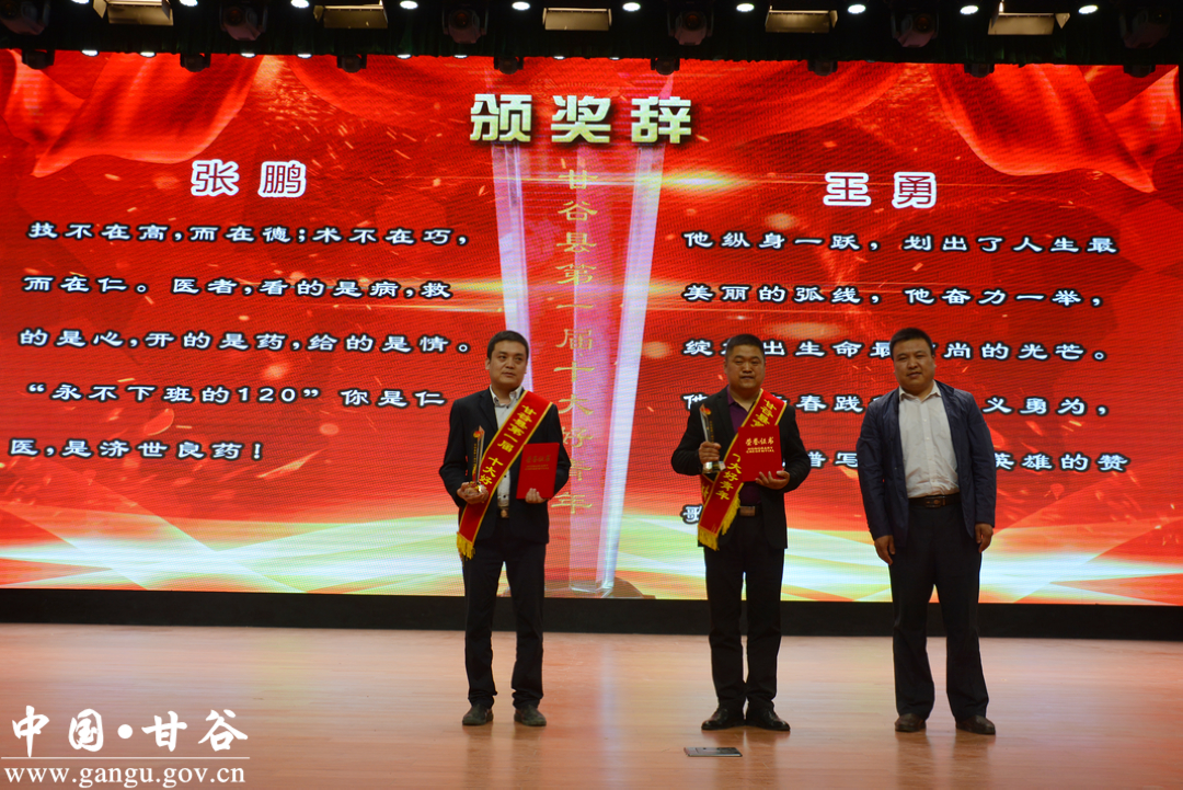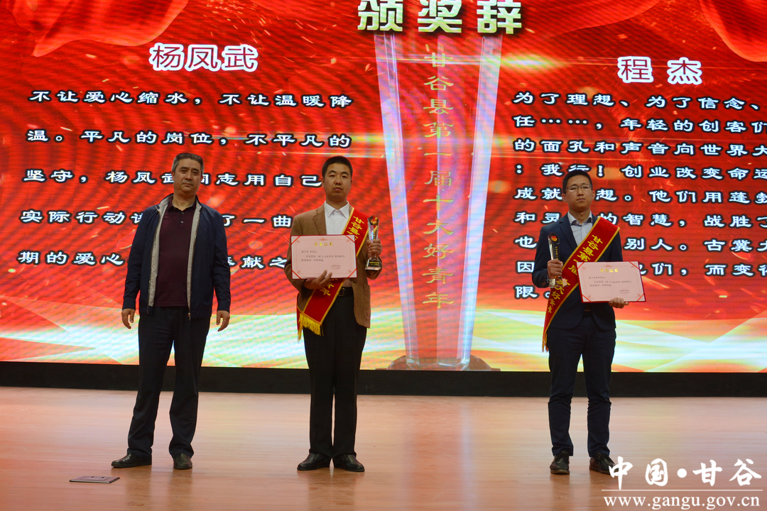 (为“甘谷县第一届十大好青年”张鹏、王勇颁奖)