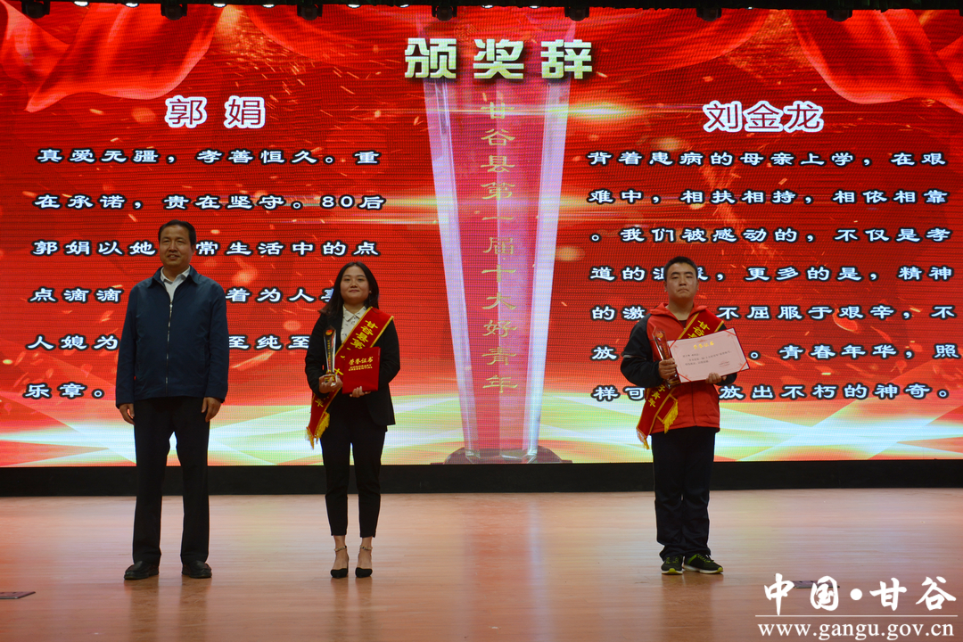 (为“甘谷县第一届十大好青年”提名奖获得者颁奖)