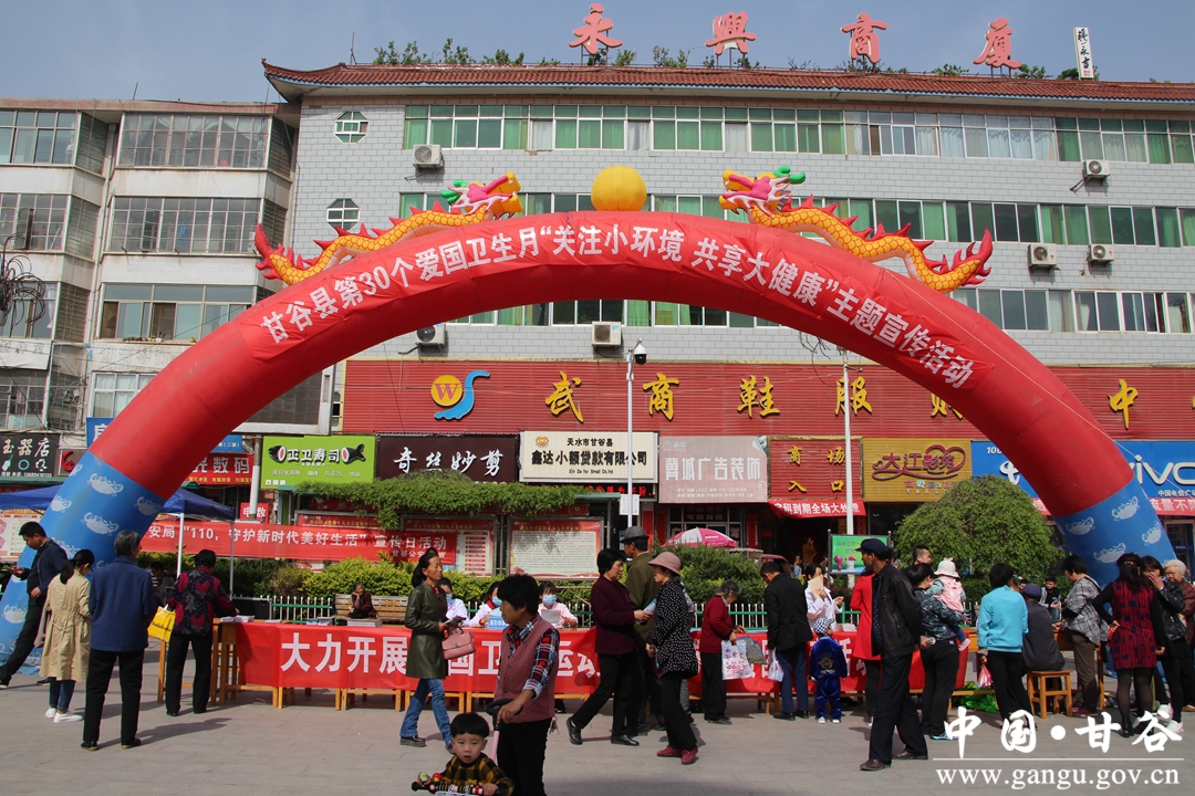4月26日,甘谷县卫计局、县爱卫办、县妇幼保健院、大像山镇卫生院等单位在县大十字广场联合开展了第69个世界卫生日和第30个全国爱国卫生月宣传活动。