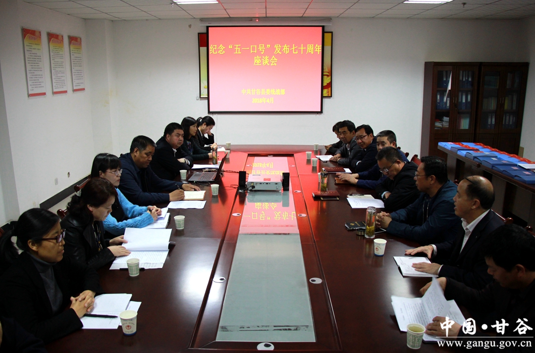 4月24日,县委统战部召开纪念“五一口号”发布70周年座谈会。县委常委、统战部长王刚,县政协副主席陈旭、马清平出席会议,县各民主党派、党外知识分子联系会负责人及部分民主党派人士参加会议。