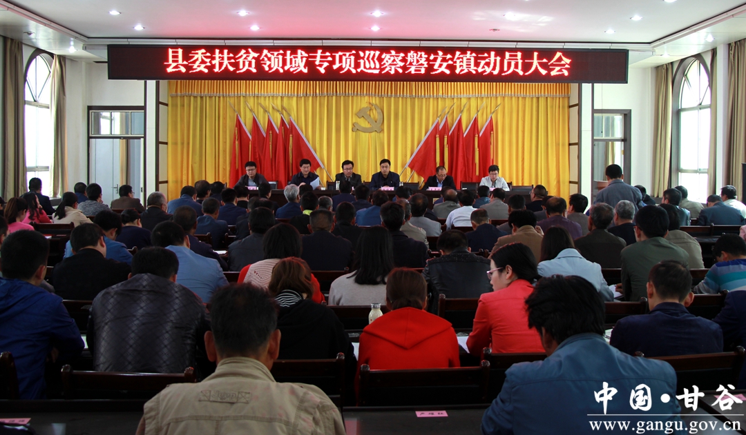 按照县委的部署要求,4月18日,县委副书记第一巡察组组长宋学勤带领巡察组成员在武家河镇、磐安镇召开巡察动员会,对扶贫领域腐败和作风问题专项巡察工作进行全面动员部署。镇、村两级干部,各驻村帮扶工作队队长(第一书记)、队员参加会议。