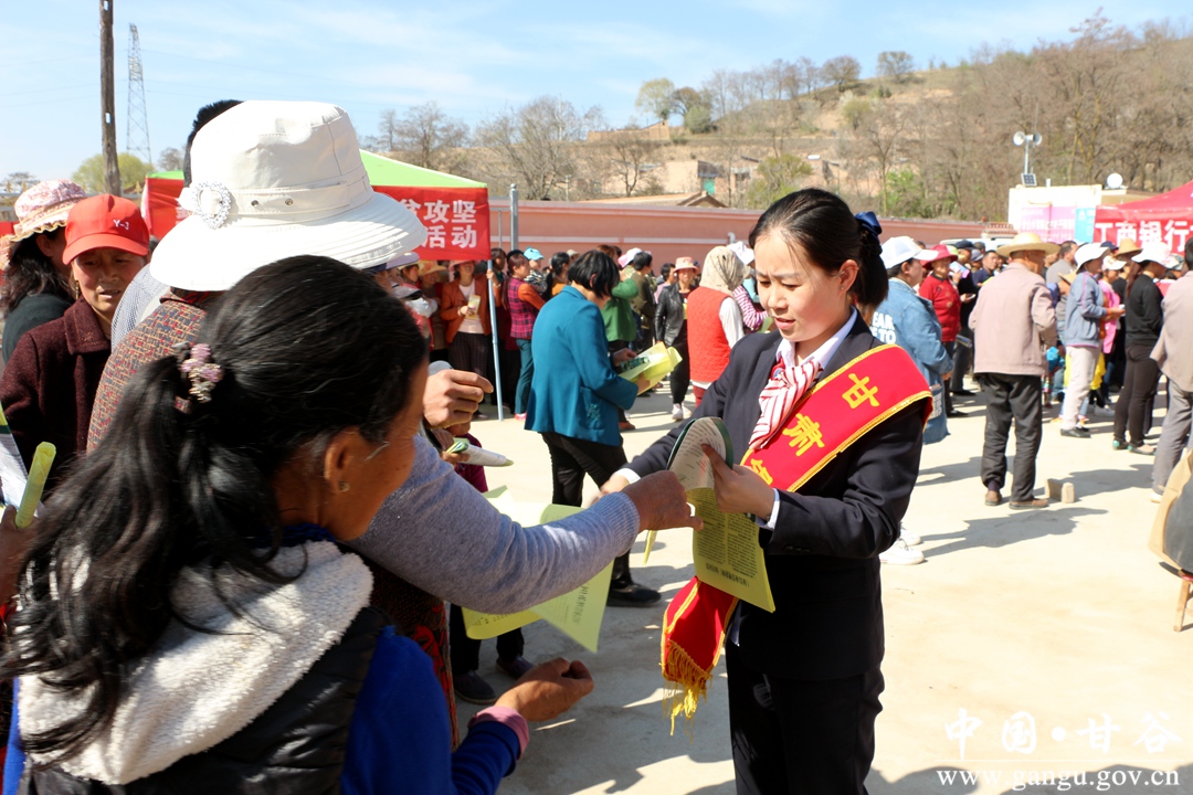 4月17日, 县金融办组织县人民银行、信用联社、建行、工行、农行、甘肃银行、兰州银行、邮储银行、华龙证券、隆源小贷公司、鑫达小贷公司、森源小贷公司,在金山镇蒲家山村开展金融系统助推脱贫攻坚暨农业产业扶贫活动。县委常委、副县长王志高参加活动。