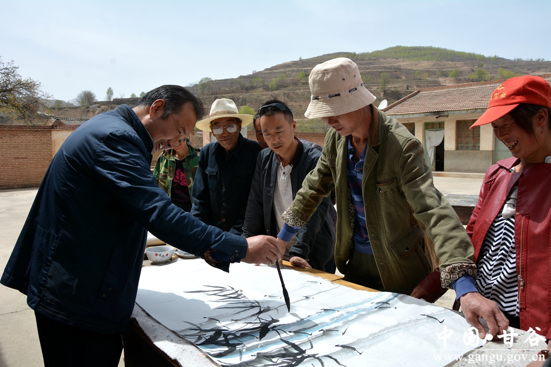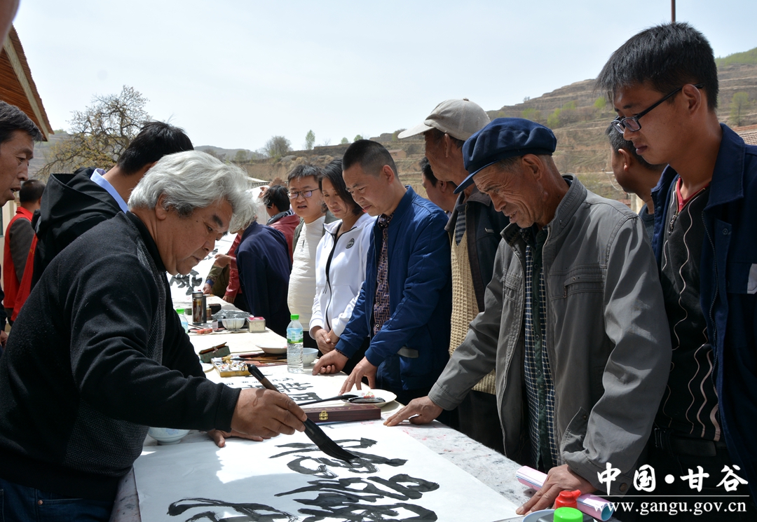 4月10日,县地震局组织甘谷书画院、甘谷西京医院、阳光公益志愿者协会赴帮扶村大庄镇王家河村开展扶贫扶志扶智活动。