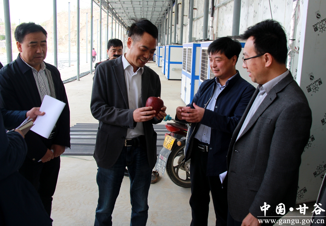 4月11日,兰州市委农工办副主任冯康斌带领考察团来甘谷县考察“三变”改革工作。市委农工部副部长伏志雄,县委副书记宋学勤、县委农工部负责人参加考察。