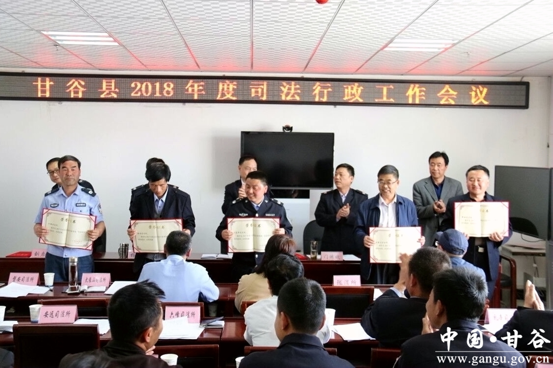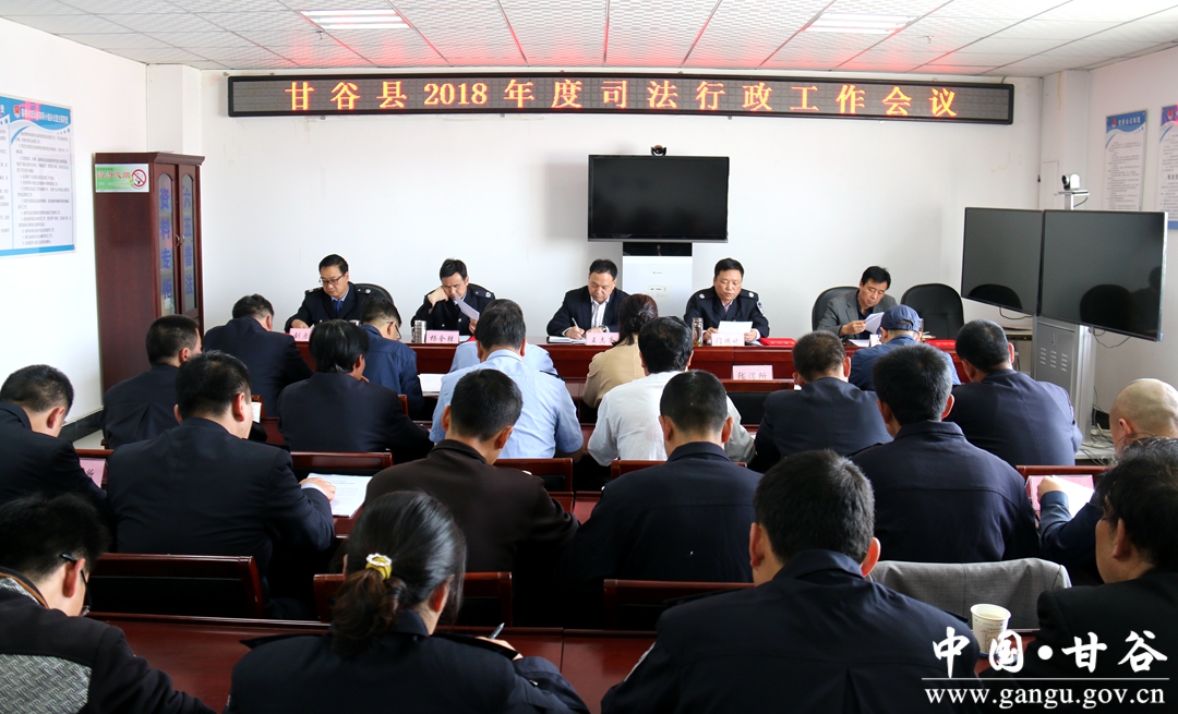 4月2日,甘谷县召开2018年司法行政工作会议,传达学习中央、省、市司法行政工作会议精神,总结2017年工作,表彰2017年度全县司法行政工作绩效考评先进集体和个人,县委常委、副县长王志高出席会议并讲话。县司法局领导班子,各司法所、律师事务所、公证处及局机关各股室全体人员共计60多人参加会议。