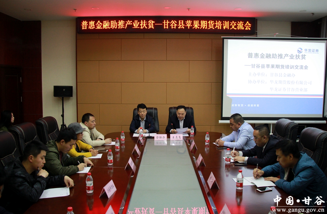 4月3日,普惠金融助推产业扶贫暨苹果期货培训交流会召开。县委常委、副县长王志高出席会议;县金融办、华龙证券甘谷广场营业部、县部分银行及果业企业负责人参加会议。