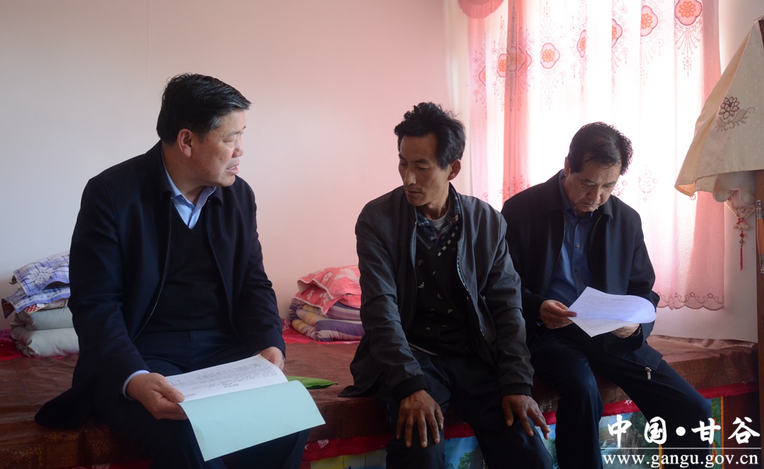 在西坪镇石坪村,王军随机走访了贫困户王小明、王顺顺,详细询问他们的生活情况和产业发展计划,检查“一户一策”精准脱贫措施落实情况。他强调,完善落实“一户一策”精准脱贫计划,是精准扶贫精准脱贫最基础、最根本的工作,是确保贫困人口如期脱贫的重要抓手,也是精准扶贫精准脱贫的精髓所在。甘谷县要在“一户一策”上下实下细功夫,抓实抓好到户工作这个关键,夯实“一户一策”这个基础,切实把精准脱贫和帮扶的各项工作做细致、做扎实、做到位,为打好打赢脱贫攻坚战赢得主动、打下坚实基础。驻村帮扶工作队要多下乡、多跑腿,认真对标“两不愁、三保障”脱贫标准,面对面与贫困户沟通商量,分析贫困原因,理清脱贫思路,因户因人确定具体帮扶举措,制定实在管用的脱贫计划,切实提升帮扶质量和实效。