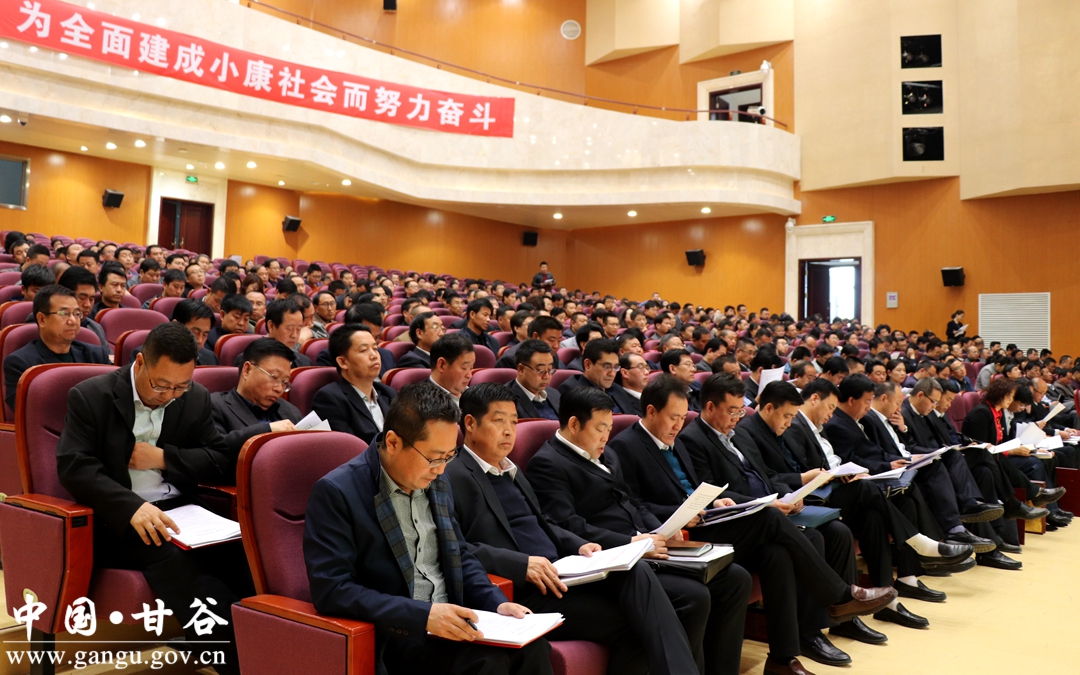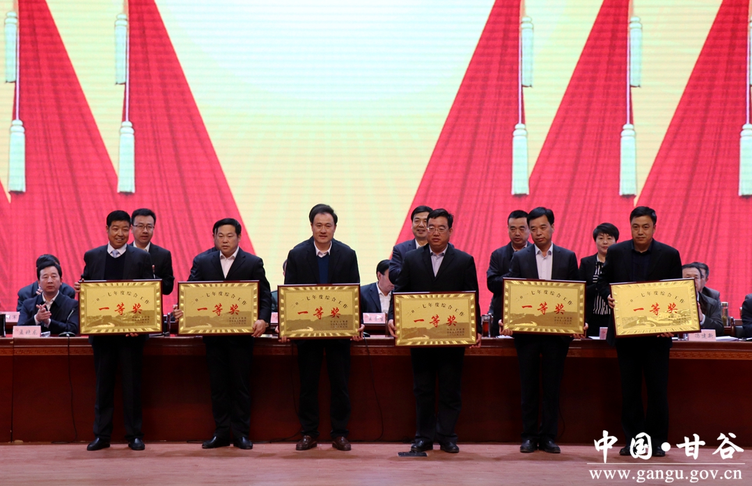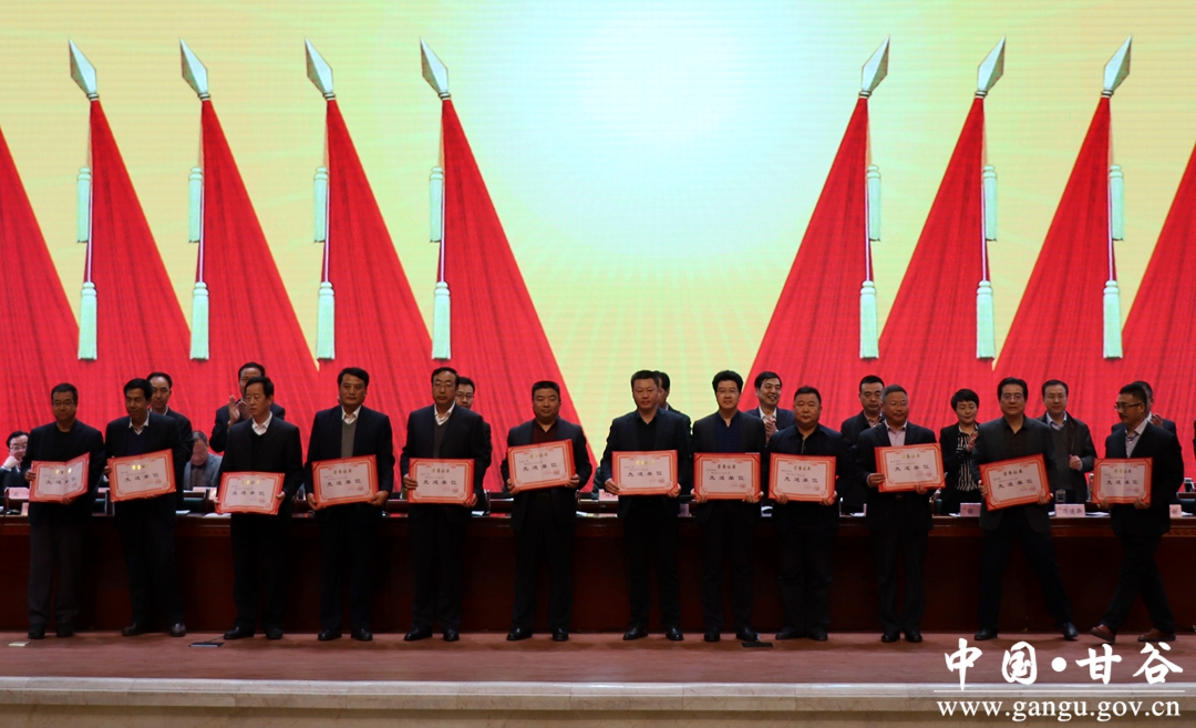 3月26日,甘谷县召开全县工作会议,贯彻落实市委、市政府系列工作会议精神,回顾总结2017年度各项工作,表彰奖励先进乡镇和先进单位,安排部署2018年度主要任务,动员全县上下坚定信心,振奋精神,以饱满的热情、过硬的作风和扎实的工作,全面完成今年各项目标任务。