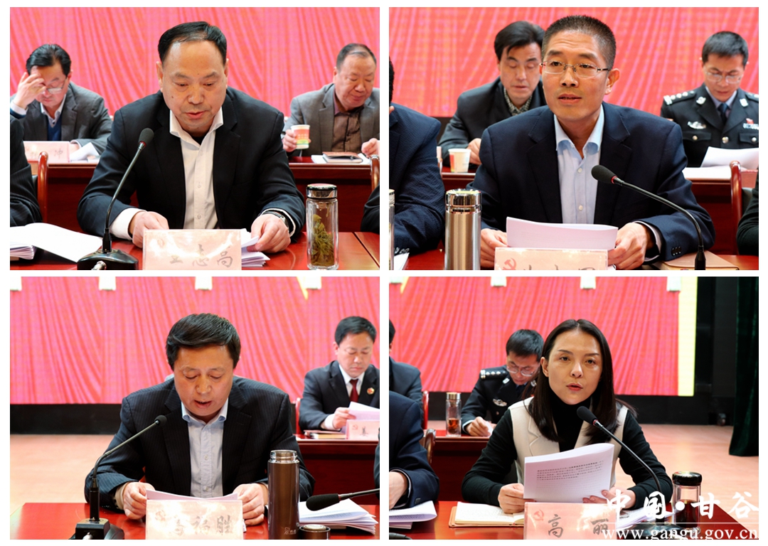 就贯彻落实会议精神,任佩光强调,各乡镇、各部门、各单位要第一时间组织全体干部职工认真学习领会会议精神,把思想和行动统一到县委、县政府的决策部署和工作要求上来,切实增强工作的责任感和主动性;要强化细化工作任务,进一步理清思路、明确任务、强化措施、靠实责任,做到每项工作都有计划、有人抓、能落实;要从严从细抓好落实,确保高质量、高标准地完成好各项目标任务。县四大组织领导要经常性地开展监督检查,督促、指导所包乡镇和分管部门有序推进工作;县委督查室、各业务主管单位和县上成立的各类督导小组要进一步加大督查力度,推促工作落实。各级各单位和广大干部职工要进一步振奋精神、强化责任、认真工作,为顺利实现整县脱贫摘帽目标、加快全面建成小康社会进程、建设富裕文明幸福美好新甘谷而努力奋斗。