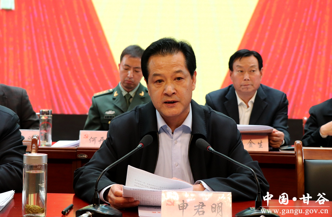 申君明要求,要按照筹划项目抓前期、签约项目抓落地、预备项目抓开工、续建项目抓进度、竣工项目抓投运的要求,严格落实“六个清单”管理制和县级领导包抓责任制,狠抓重点项目建设;要坚持一产调结构、二产扩总量、三产抓提升,以乡村振兴战略为统领,突出冀城产业园建设这个重点,整体提升西城区开发建设水平,高度重视农村电商发展,加强旅游宣传推介,加快产业转型升级;要坚持教育优先发展,实施好“三下乡”文化惠民工程,深化医药卫生体制改革,统筹发展社会事业;要坚持民生为大的理念,全力推进省级文明县创建,突出抓好重点群体就业工作,妥善安排困难群众基本生活,持续增进群众福祉。要持续推进“放管服”改革,深化农村综合改革,全面推开农村“三变”改革,统筹推进机构、监察体制、供销综合、投融资体制、财税体制改革,增强发展的活力和动力;要牢固树立“绿水青山就是金山银山”发展理念,打好环境保护“三大战役”,深入推进污染防治“十大工程”,突出抓好各级环境督查反馈问题整改,持续打好污染防治攻坚战;要严格落实“党政同责、一岗双责、齐抓共管、失职追责”制度,按照“三管三必须”要求,毫不松懈抓实安全生产;要扎实推进农村人居环境整治三年行动计划,深入开展美丽乡村建设,加强源头治理和群众文明习惯养成,扎实推进全域无垃圾治理;要严格落实县、乡、村三级河长责任制,切实改善河道生态环境,努力实现“河畅、水清、岸绿、景美”目标;要深入开展矛盾纠纷排查调处,加强“平安甘谷”建设,全力维护社会和谐稳定。