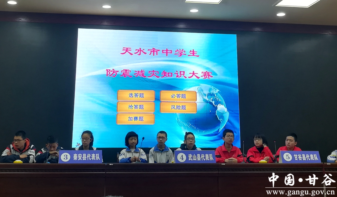 3月20日,以“防震减灾,知识先行”为主题的天水市中学生防震减灾知识竞赛决赛在市伏羲学院举行,在甘谷县教体局和甘谷县地震局的精心组织下,通过层层选拔,高中组甘谷三中代表队和初中组新兴中学代表队进入全市决赛阶段比赛。