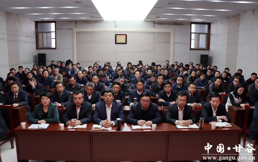 会议由贾忠慧同志主持。全体县级干部、“法检”两长、各乡镇党委书记、乡(镇)长,县直各部门、单位主要负责人,共计140多人参加会议。