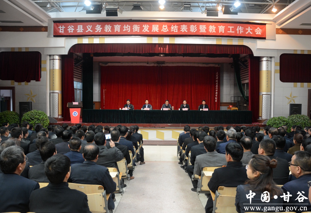 3月9日,甘谷县召开义务教育均衡发展总结表彰暨教育工作大会,全面总结2017年我县义务教育均衡发展工作成就,表彰奖励在义务教育均衡发展工作中业绩突出的75个先进集体和243名先进个人,分析研判当前教育工作面临的形势和任务,安排部署新时代教育改革发展的主要工作,进一步动员全县上下和广大教职员工统一思想,振奋精神,开拓进取,真抓实干,奋力开创新时代全县教育事业发展新局面。县委常委、宣传部长张庆元,县人大常委会副主任王金生,副县长牛武军,政协副主席董成斌出席会议。县教体局领导班子成员,各学区、县直学校校长,各中小学、独立初中、九年制学校校长,教体局各股室长,受表彰的先进集体负责人和先进个人共计400多人参加会议。