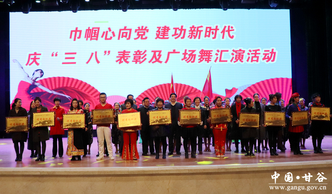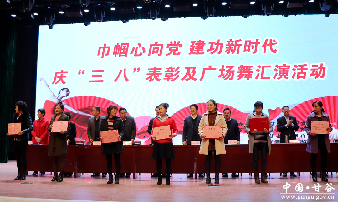 巾帼心向党,建功新时代。3月8日,甘谷县举行2018年庆“三八” 表彰典礼暨广场舞汇演,来自全县各行各业、各条战线的妇女代表欢聚一堂,共同庆祝自己的节日。
