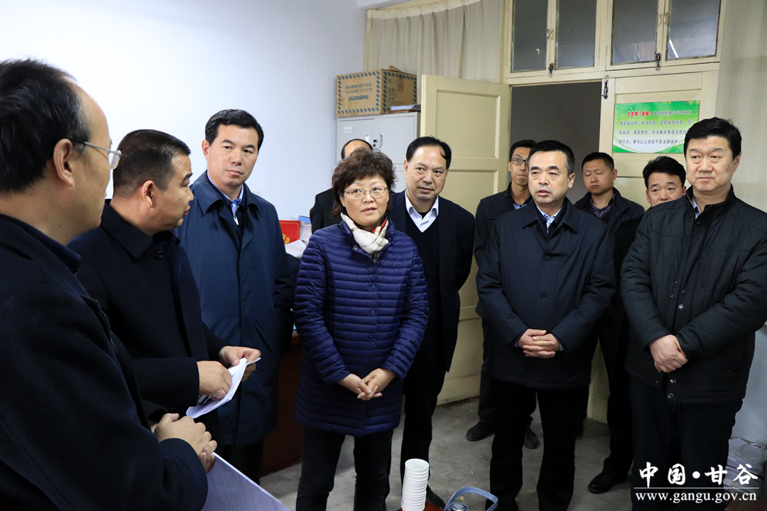 3月5日—6日,省政府金融办党组书记、主任汤澜,综合处处长沈靖弘,金融一处处长陈宇峰带领调研组深入甘谷县,调研精准脱贫帮扶工作。副市长程伟东,市政府金融办党组书记、主任杨帆;县委副书记任佩光,县委常委、副县长王志高一同调研。