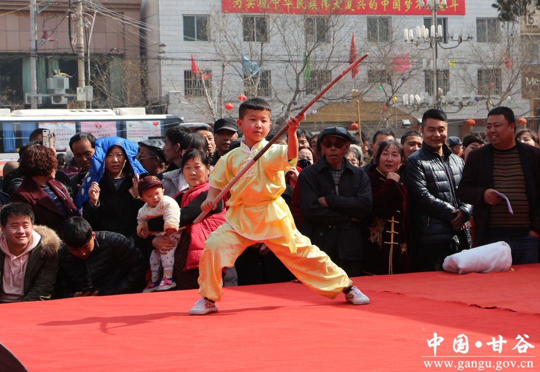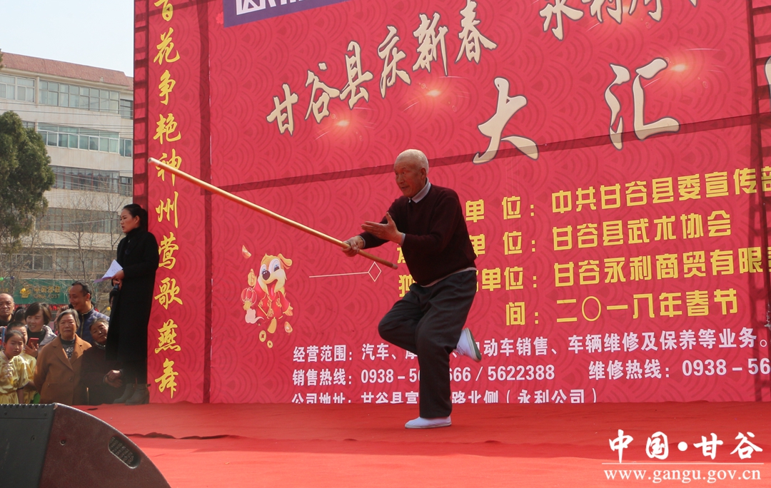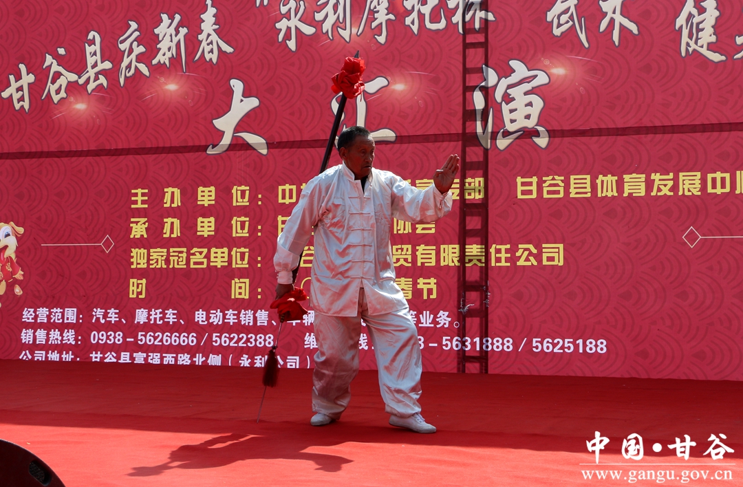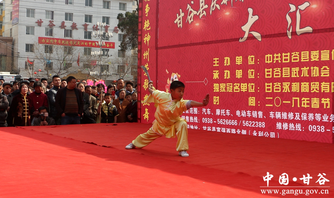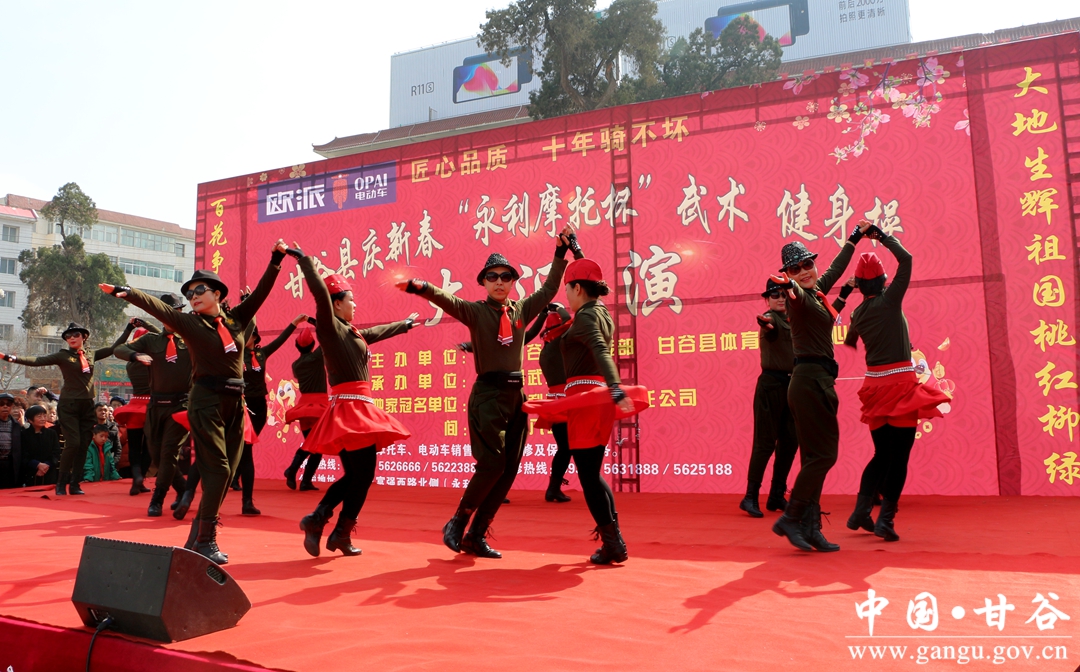 2月28日,由甘谷县委宣传部,县体育发展中心主办,县武术协会承办的2018年庆新春“永利摩托杯”武术健身操汇演活动在大什字广场火热上演,来自全县精选的8支健身队和112名武术队员欢聚一堂,以活力四射的舞蹈、精湛武术技艺,在春节期间为市民们献上一场喜庆的武术健身 “大餐”。