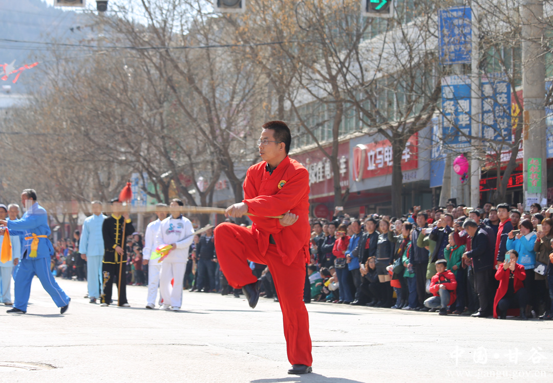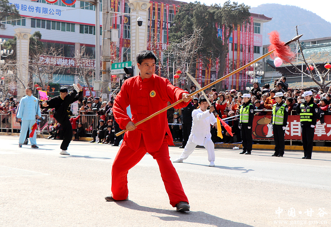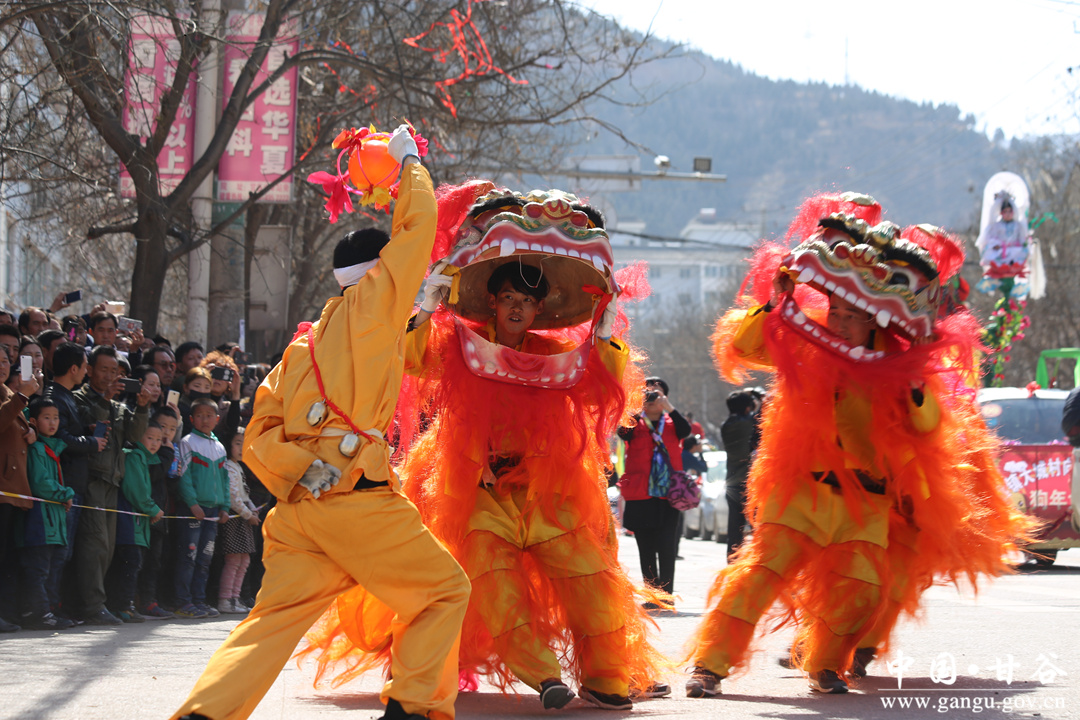 伴随着欢快的锣鼓声,太平锣鼓队率先登场,拉开了社火展演的序幕,一个个精彩的节目依次展现在观众面前。鼓声阵阵、气势雄壮,舞龙舞狮,威风凛凛;腰鼓和高台表演,在喜庆的气氛中演出了博大精深、源远流长的民俗文化,舞出了和谐家园的美丽画卷;精彩的武术表演,动静有致、刚柔并济,展现了甘谷姜维武术的无限魅力;磐安舞蹈队的表演,动作优美舒展、整齐划一,和着优美的旋律,翩翩起舞,崭新的风貌成为社火汇演的一道亮丽风景。精彩纷呈的节目吸引了众多群众前来观看,演员们精湛的表演把春天的生机、新年的吉祥带给了广大群众,博得了观众们的阵阵喝彩。