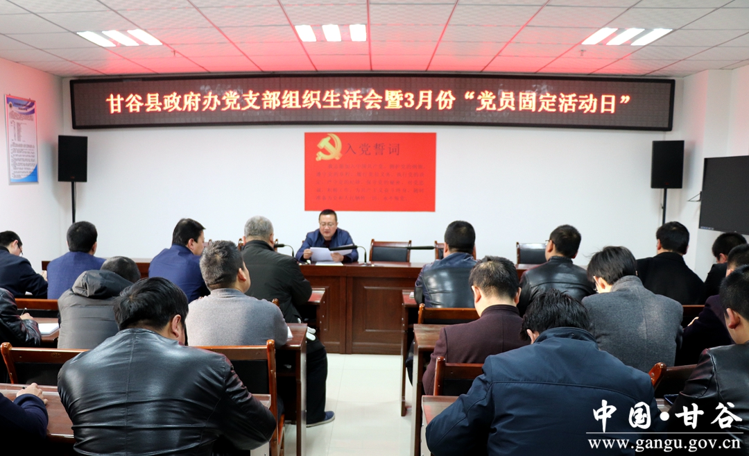 3月2日,县政府办公室党支部召开2017年度组织生活会暨3月份“党员固定活动日”活动。政府办全体党员干部参加会议。