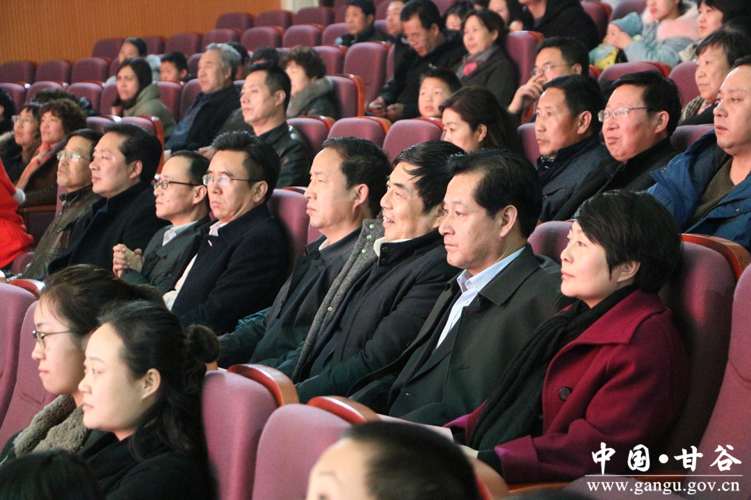 贺岁新时代,欢庆幸福年。2月26日晚,甘谷大剧院灯光璀璨,歌舞飞扬,由县委宣传部主办,县文广局、市歌舞团和天水艺术学校承办的甘谷县2018年新春文艺晚会在这里精彩上演。县人大常委会主任令建民,县委副书记、县长申君明,县委常委、纪委书记、监委主任谢辉,县委常委、宣传部长张庆元,副县长王瑾,县政协副主席田小龙与全县各界群众代表欢聚一堂,共同观看精彩演出。