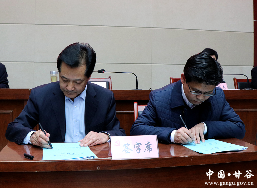 (县委副书记、县长、县禁毒委主任申君明与各乡镇、相关部门签订2018年禁毒工作目标责任书)