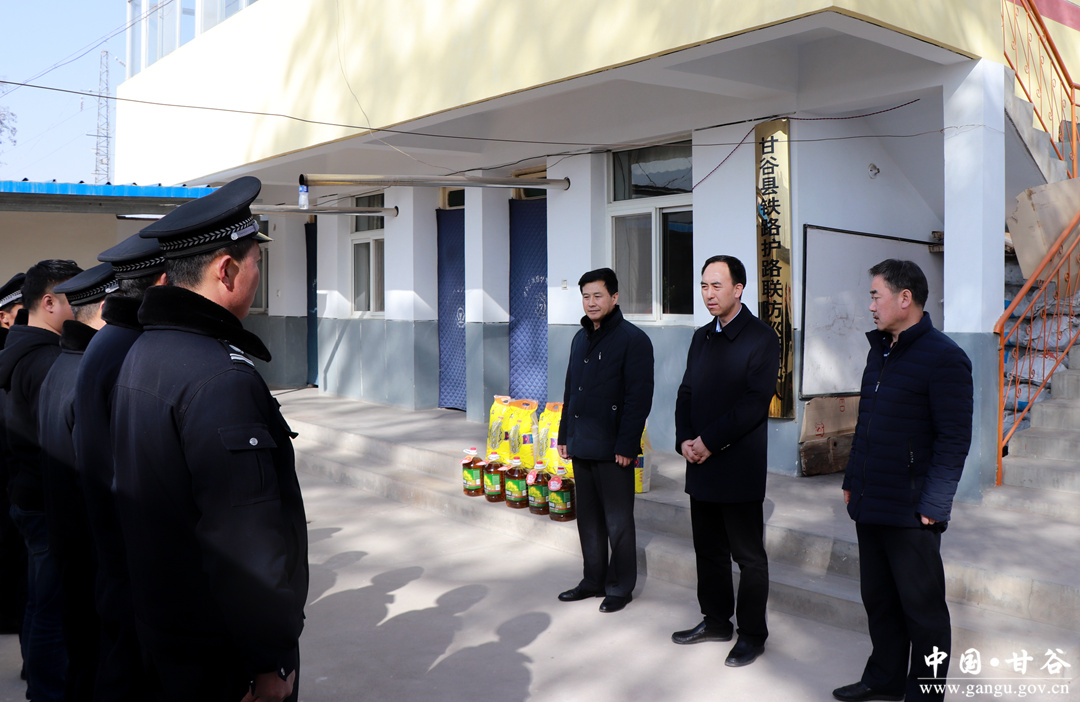2月11日,县委常委、政法委书记冯全敬深入县铁路护路联防巡查大队走访慰问全体队员,为他们送去了慰问品,并致以节日的祝福和问候。