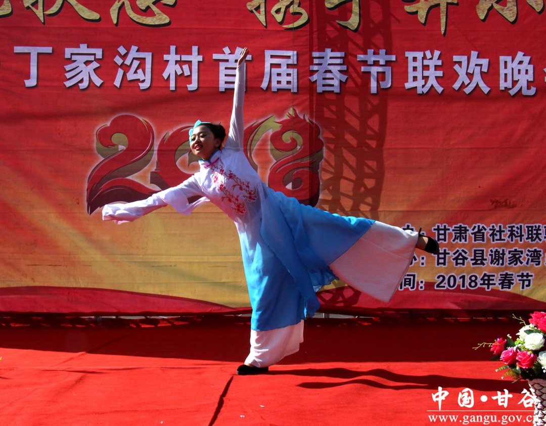 2月12日,随着舞蹈《喜庆临门》的欢快上演,一台由省社科联驻丁家沟村帮扶工作队主办,全村群众积极参与的2018年迎春晚会,在甘谷县谢家湾乡丁家沟村文化广场拉开帷幕,让昔日宁静的山村沸腾起来,不仅营造了浓厚的新春氛围,更为坚决打赢脱贫攻坚战,增强群众脱贫致富信心注入强劲动力。
