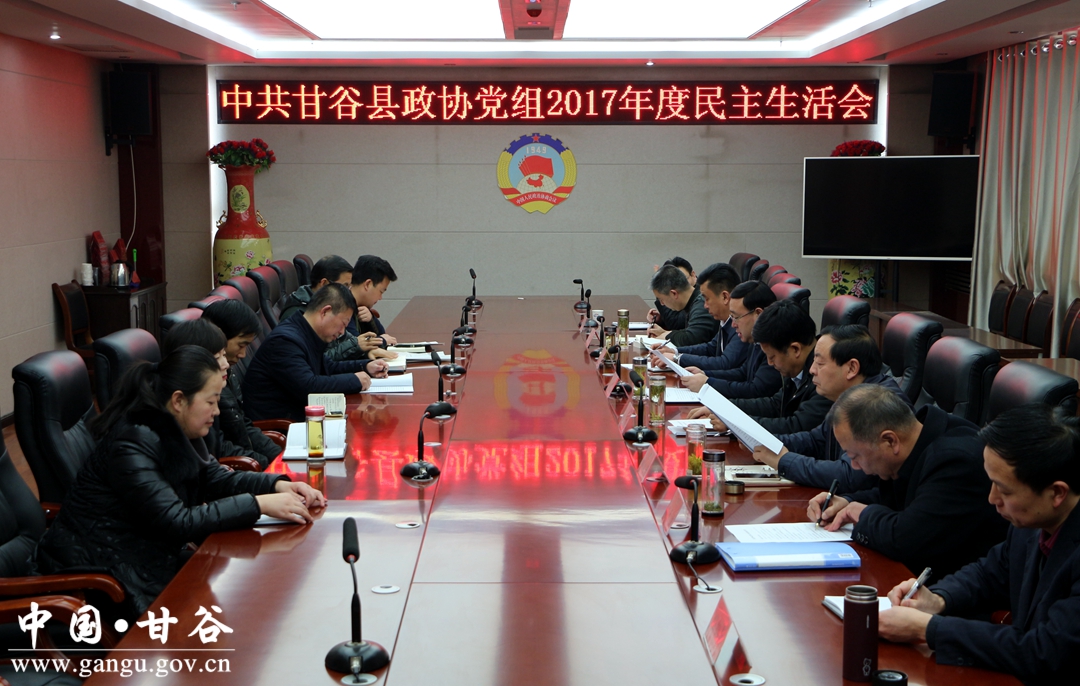 2月9日,甘谷县政协党组召开2017年度专题民主生活会,政协党组成员以“认真学习领会习近平新时代中国特色社会主义思想、坚定维护以习近平同志为核心的党中央权威和集中统一领导、全面贯彻落实党的十九大各项决策部署”为主题,重点对照党章和《准则》《条例》规定,认真查摆问题,深入检查剖析,提出整改措施。
